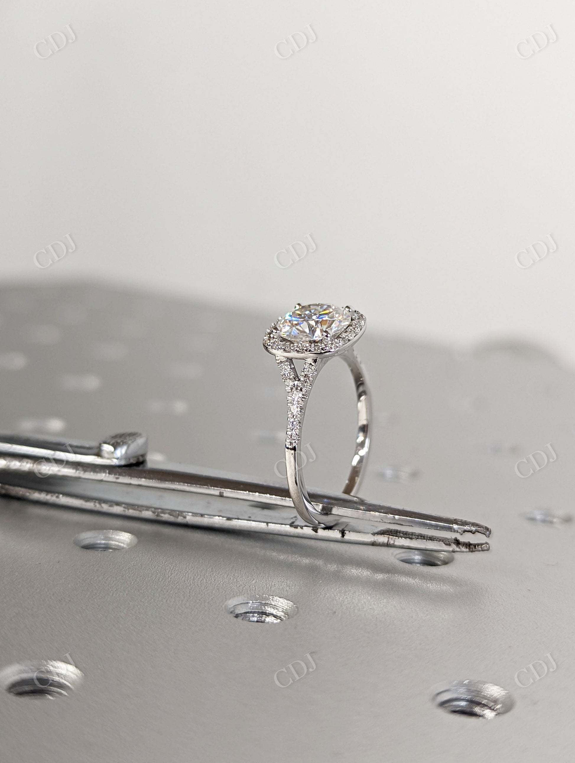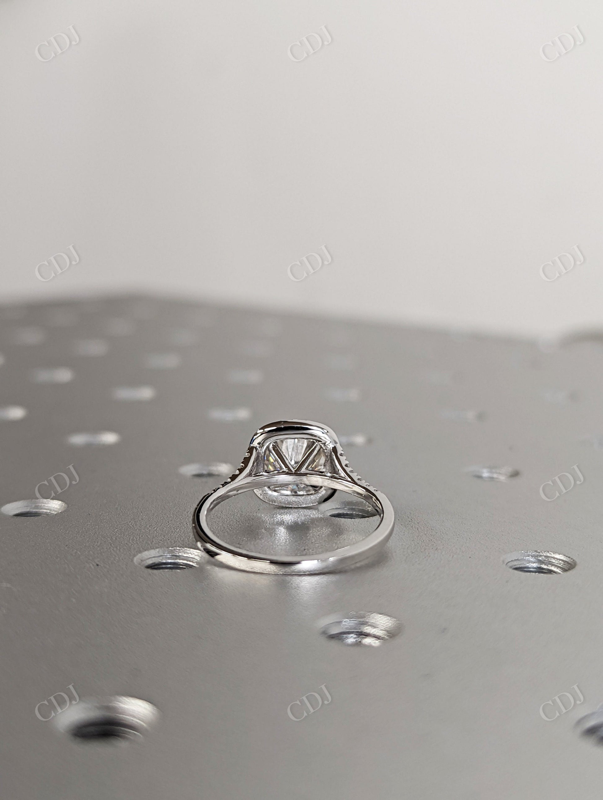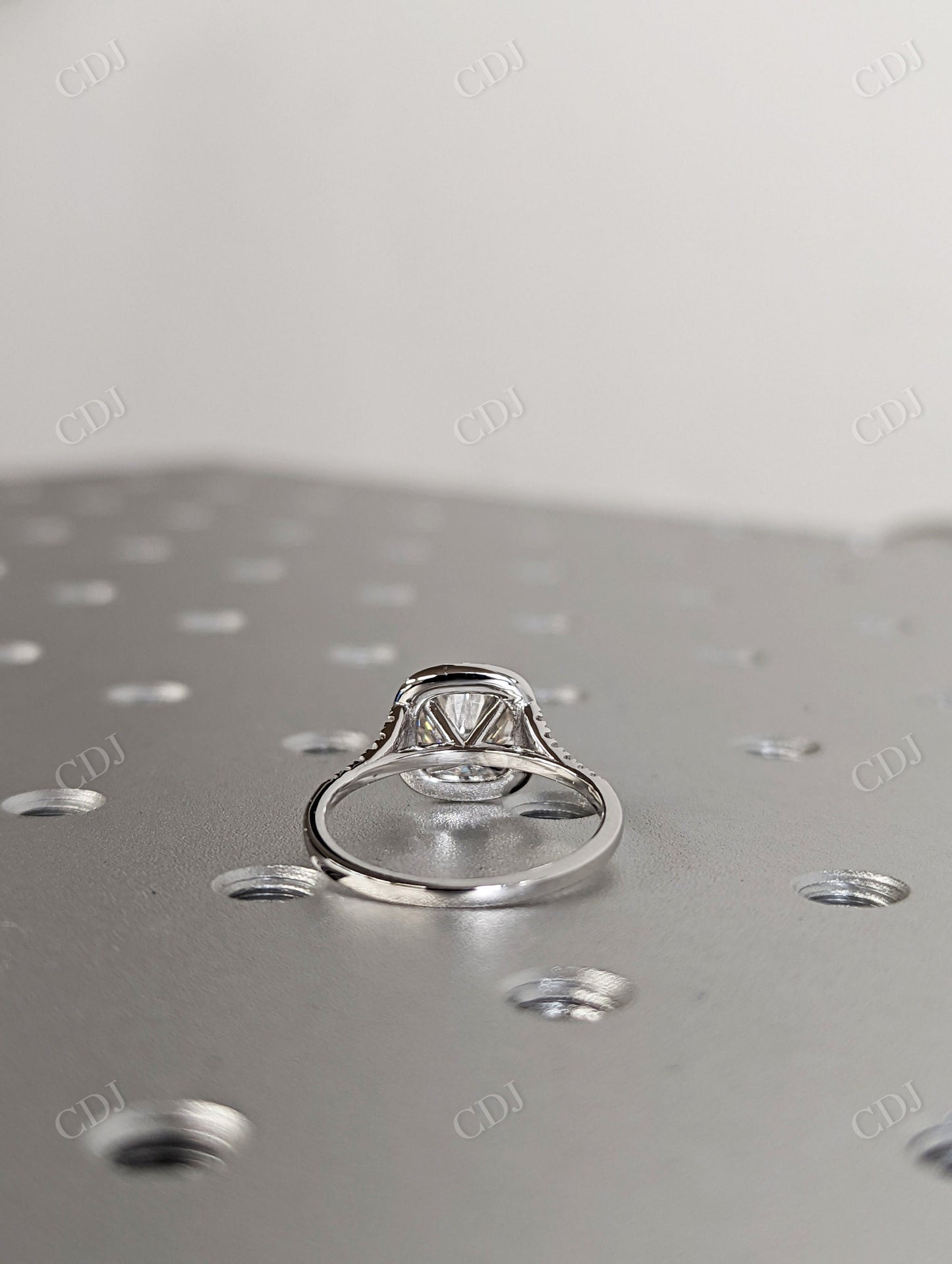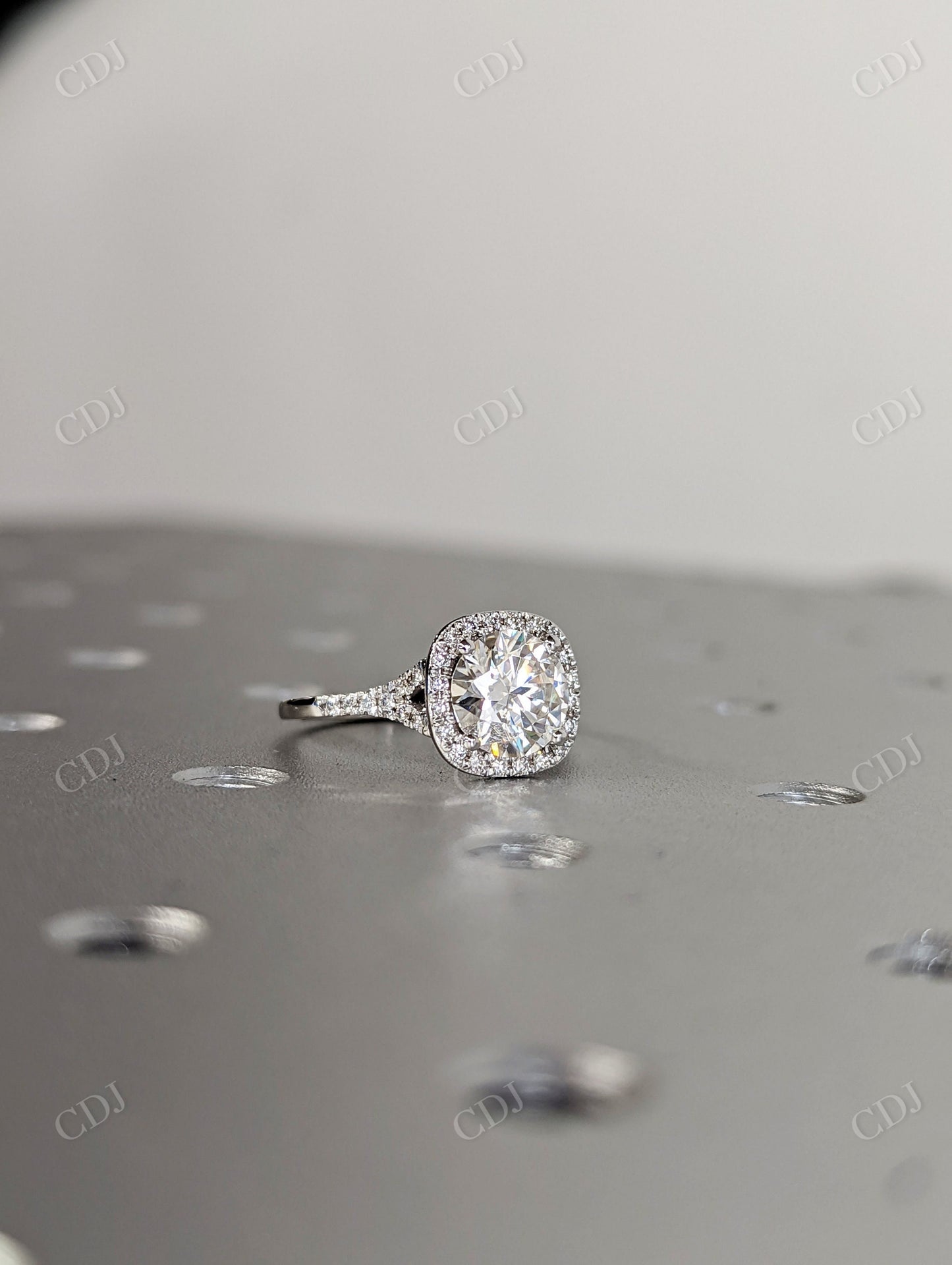 Cushion Shaped Halo Round Cut Moissanite Split Shank Engagement Ring