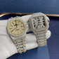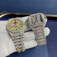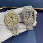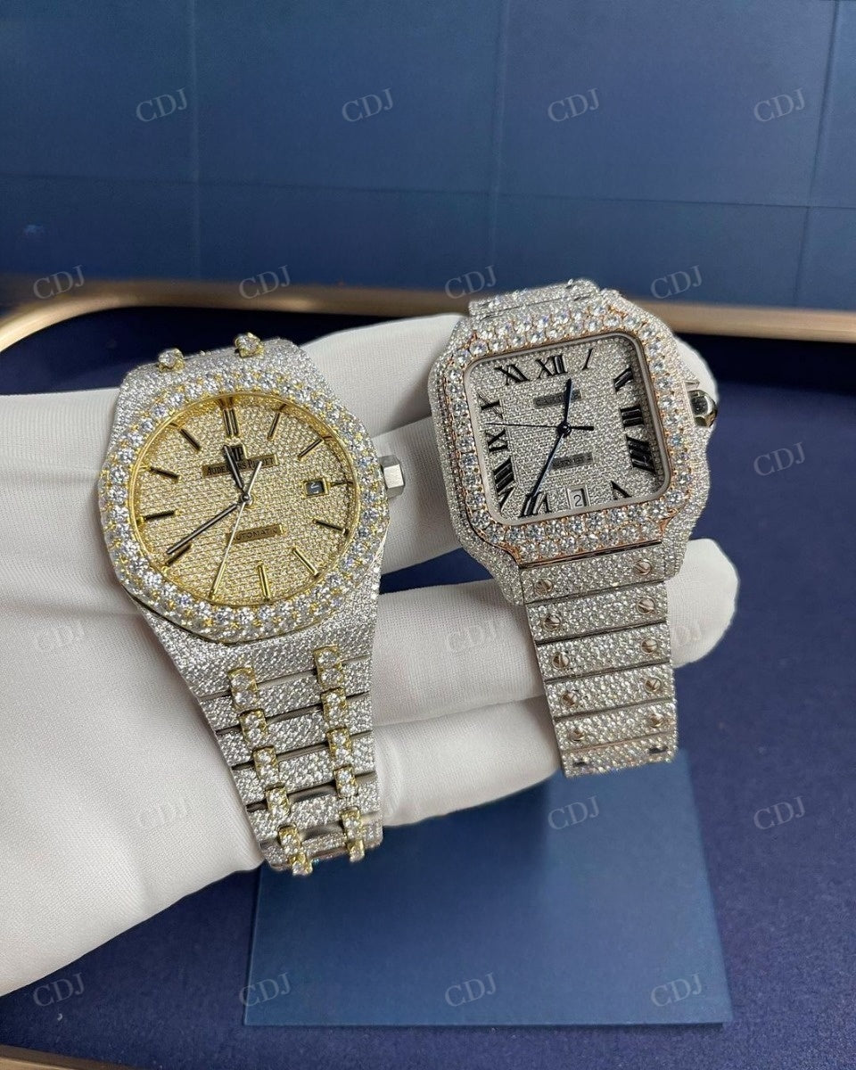 Covered in high-quality VVS Moissanite or CZ stones across the case, bezel, dial, and bracelet, ensuring full-spectrum sparkle that mimics high-end diamond watches.