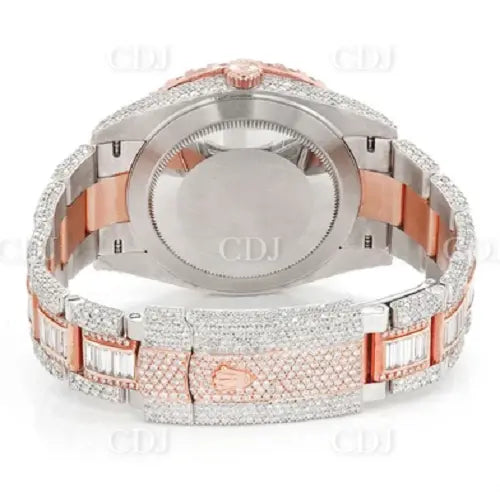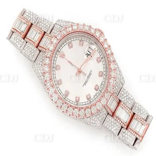 Make a bold statement with the 41MM Rose White Rolex Customized Diamond Watch (22.16CTW) — where exquisite craftsmanship meets eye-catching sparkle. This custom-designed timepiece combines a stunning rose and white gold tone with an impressive 22.16 carats of premium VVS diamonds, creating a luxurious watch that radiates sophistication and style.