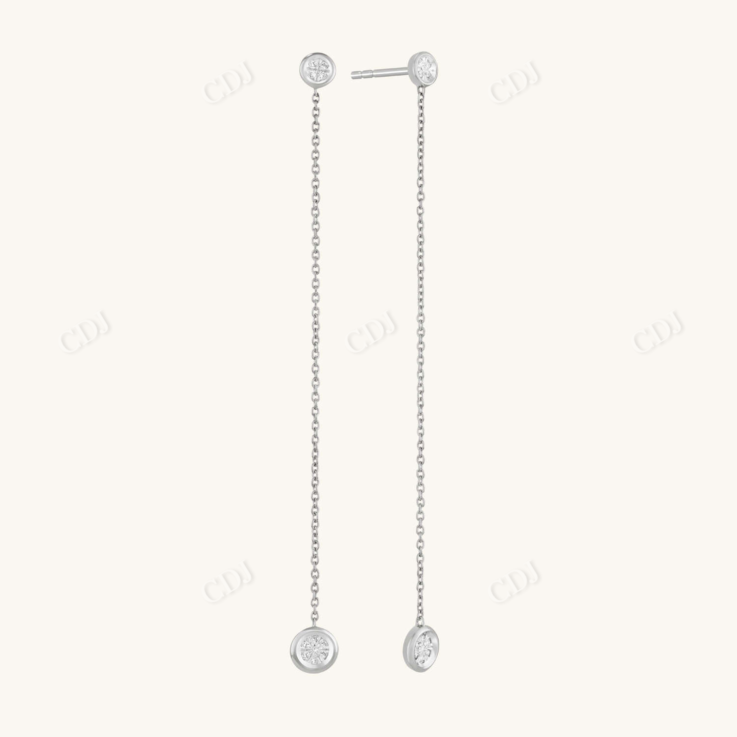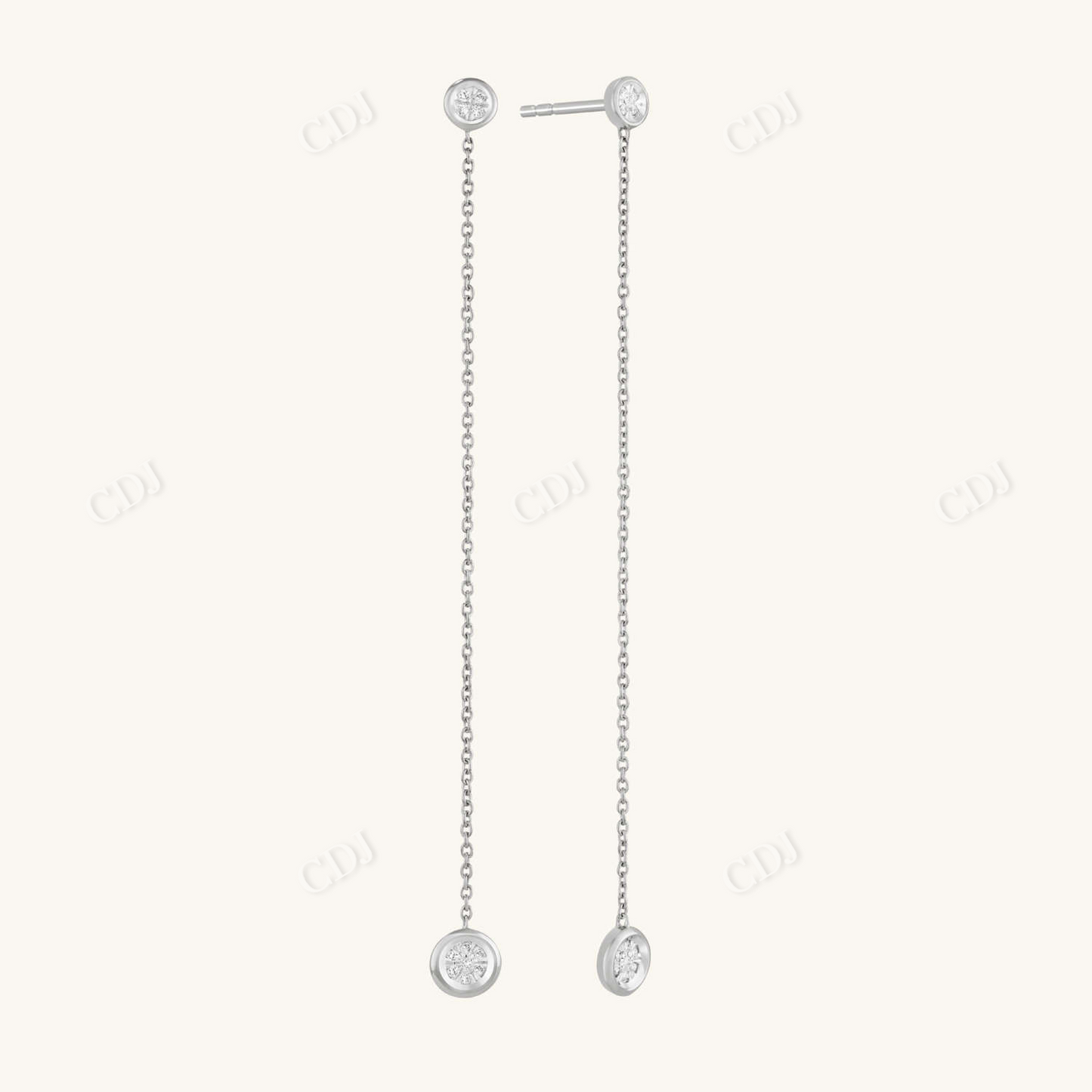 Elevate your elegance with the Diamond & White Enamel Round Bezel Chain Drop Earrings—a chic fusion of contemporary charm and classic sparkle. Featuring bezel-set round diamonds suspended by delicate chains and accented with glossy white enamel, these drop earrings offer refined movement, radiant shine, and versatile sophistication. Perfect for modern women who appreciate subtle luxury.