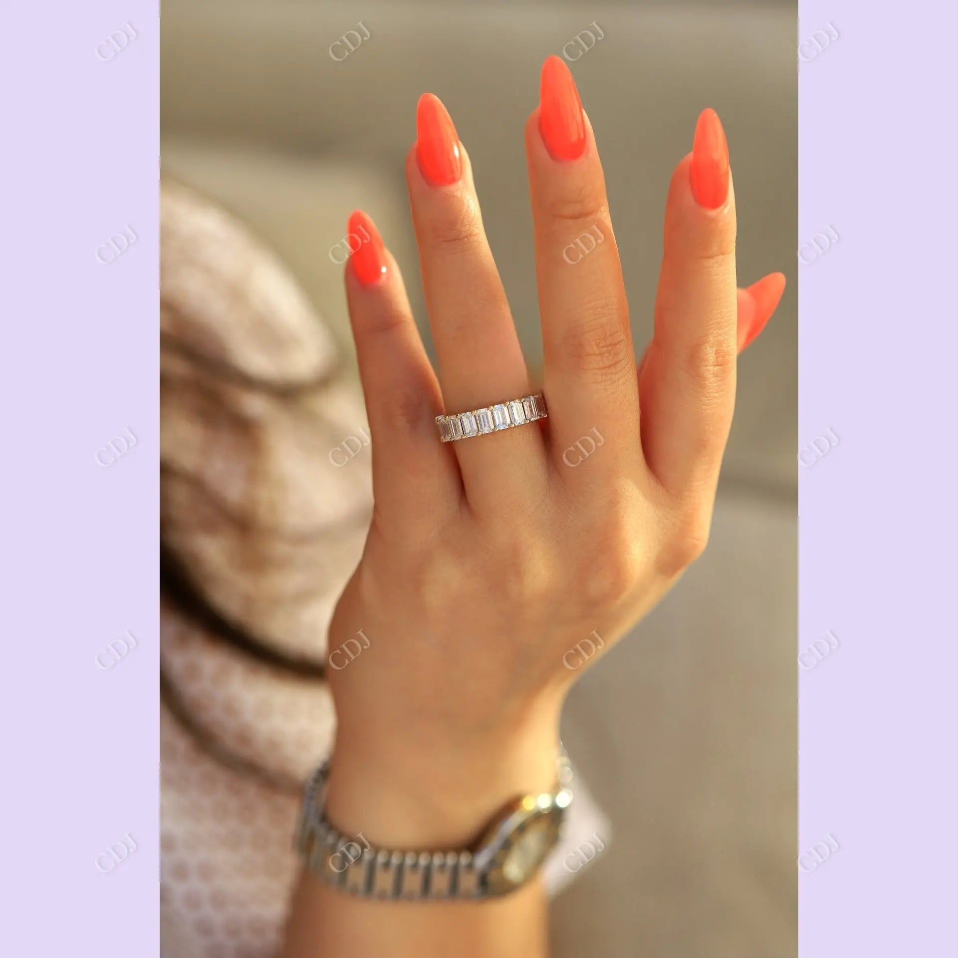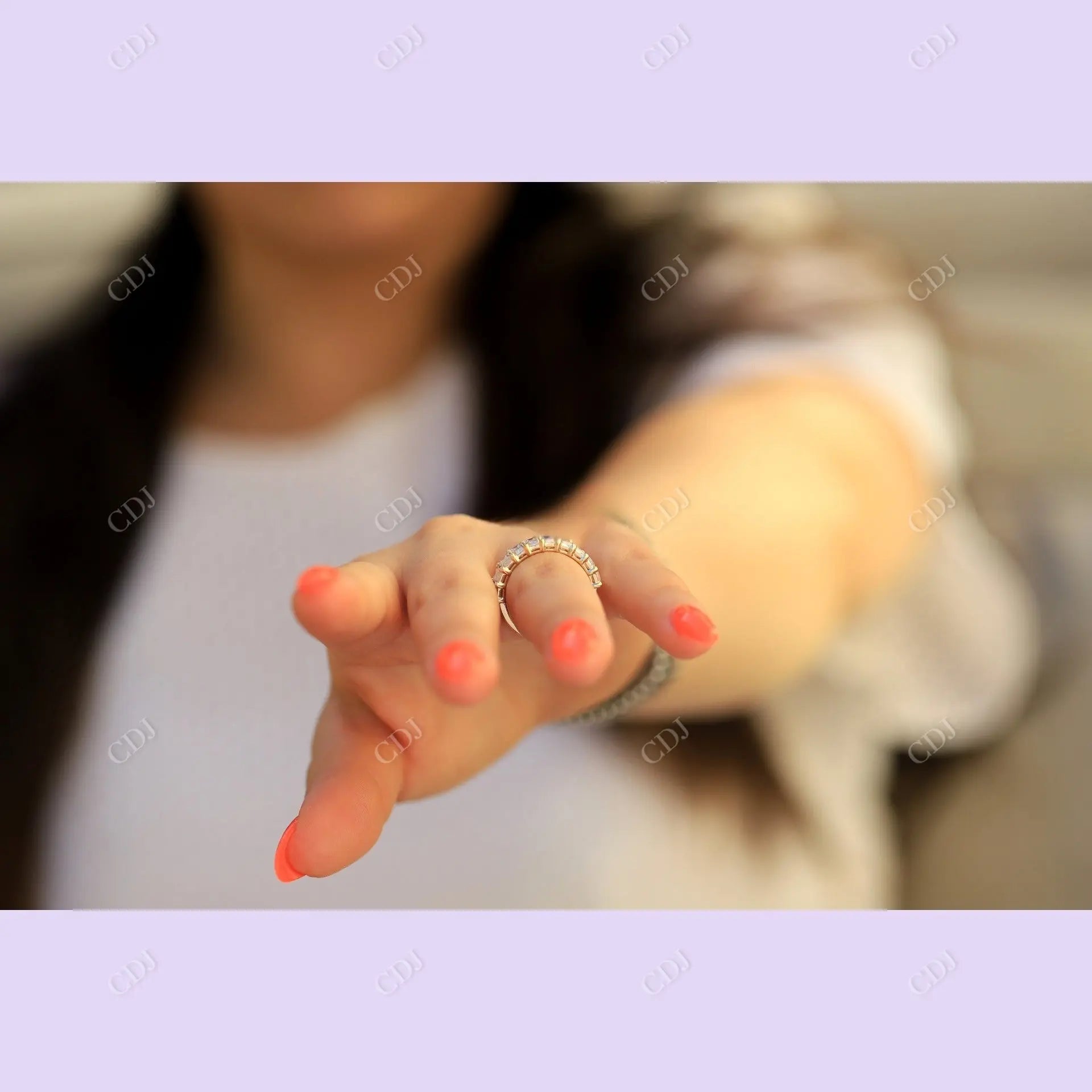 If you’re searching for an “emerald cut moissanite wedding band,” “half eternity moissanite band,” or “sustainable moissanite wedding ring,” this band offers a stunning balance of style, comfort, and ethical craftsmanship.