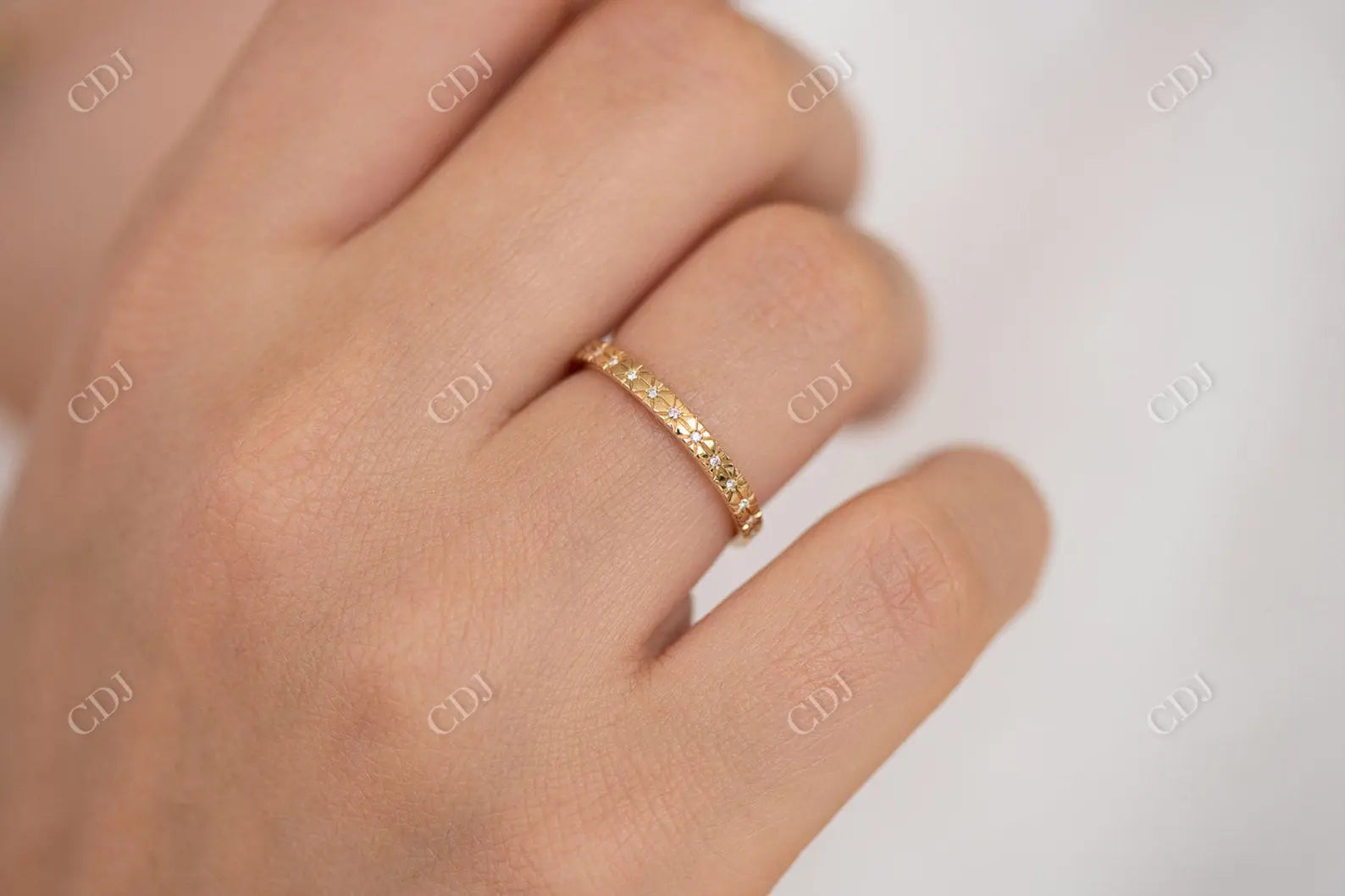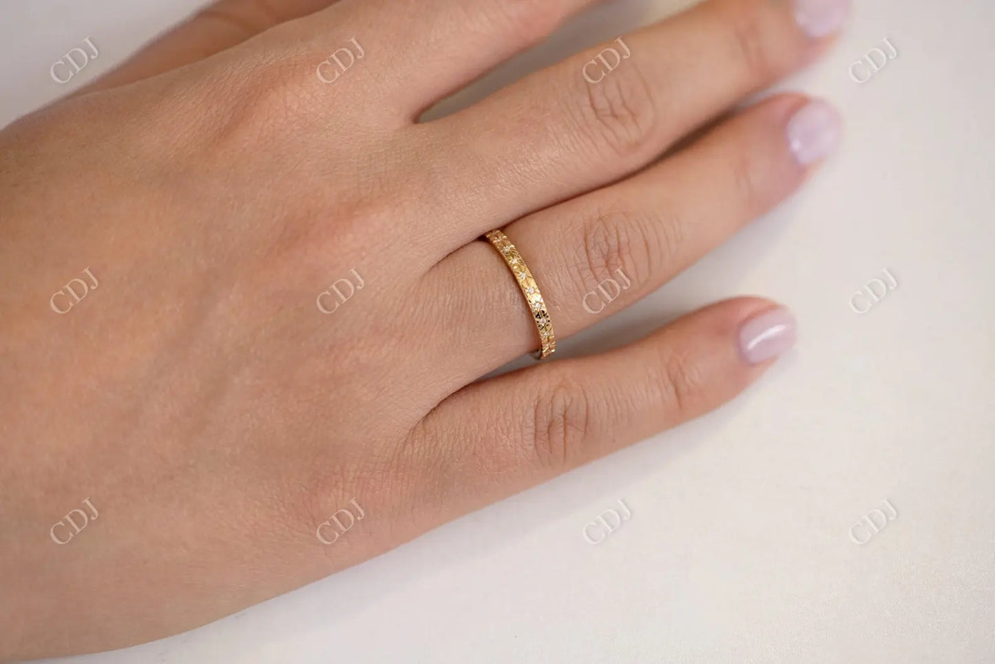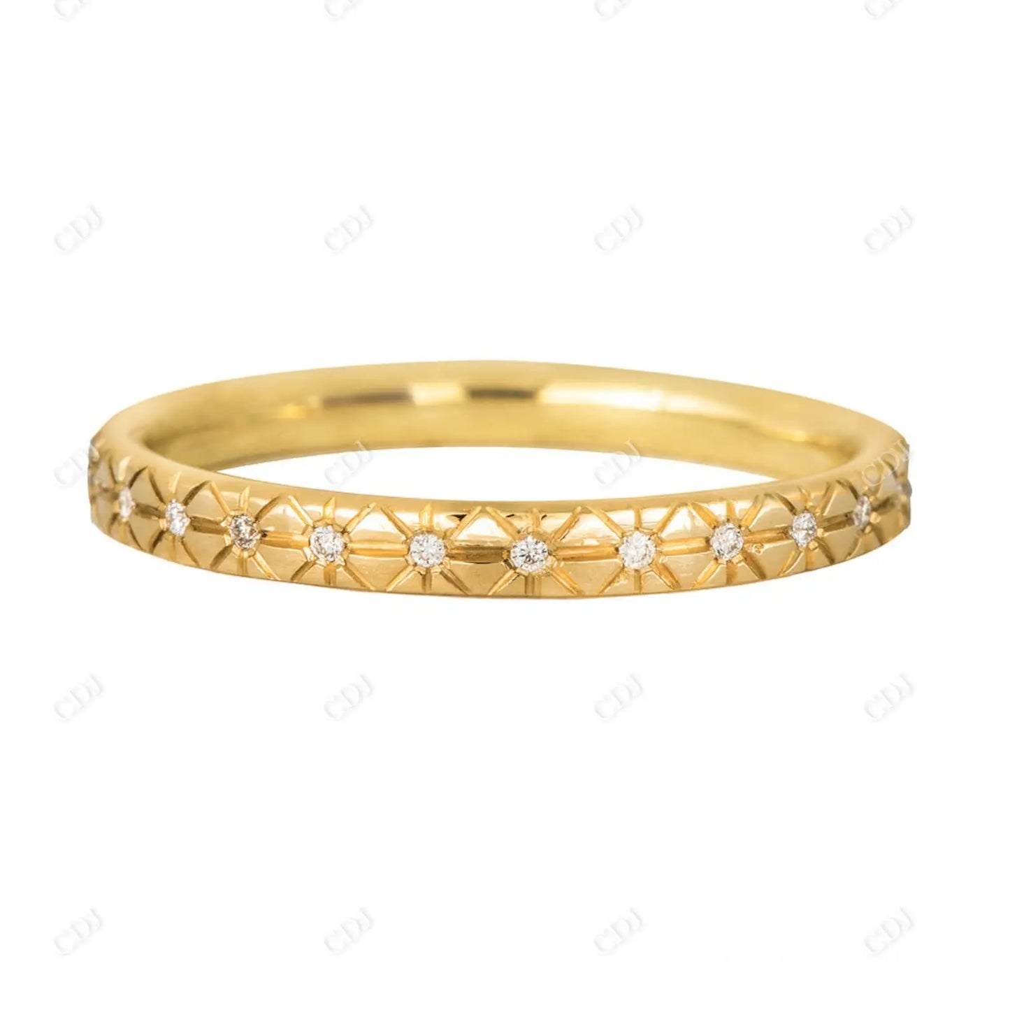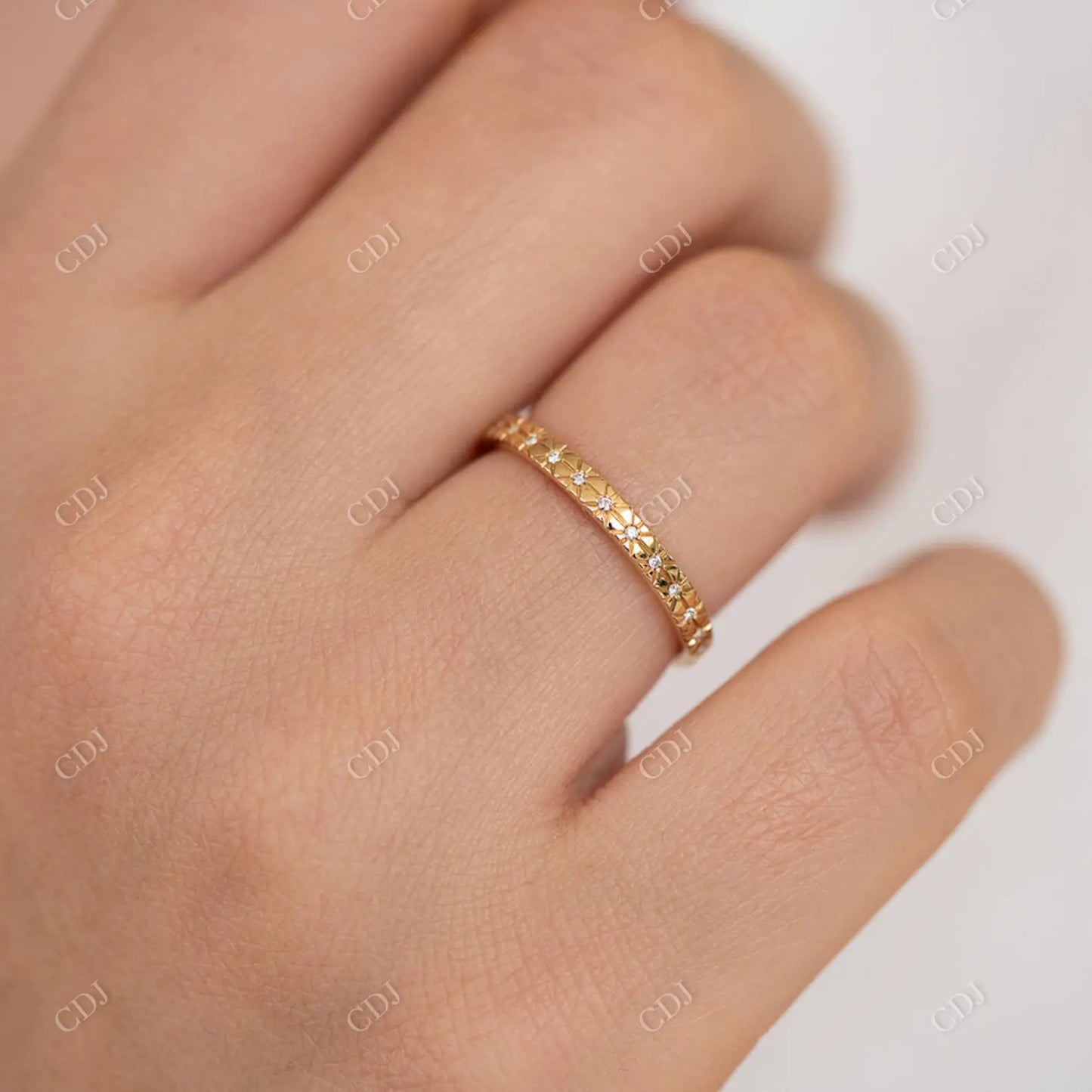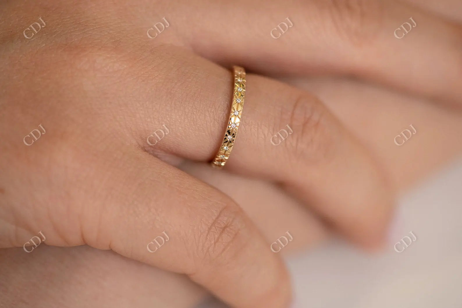 Engraved 0.8MM Natural Diamond Wedding Band – Delicate Sparkle with Timeless Detail 💎