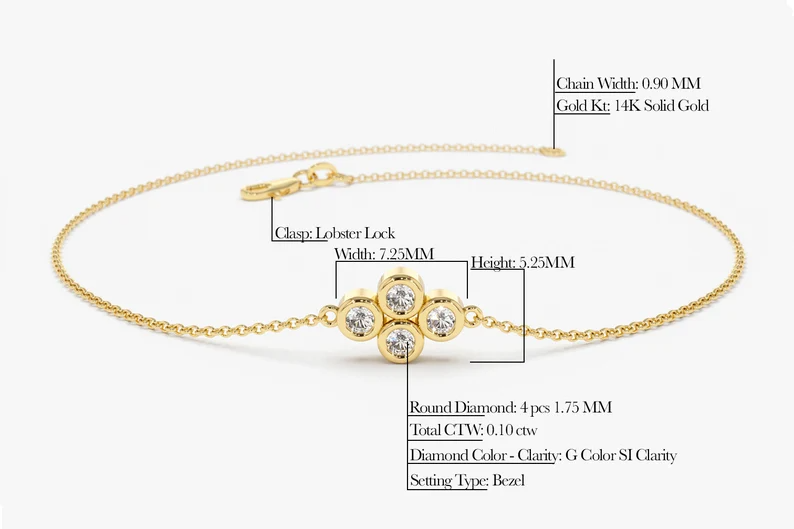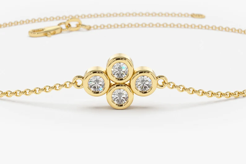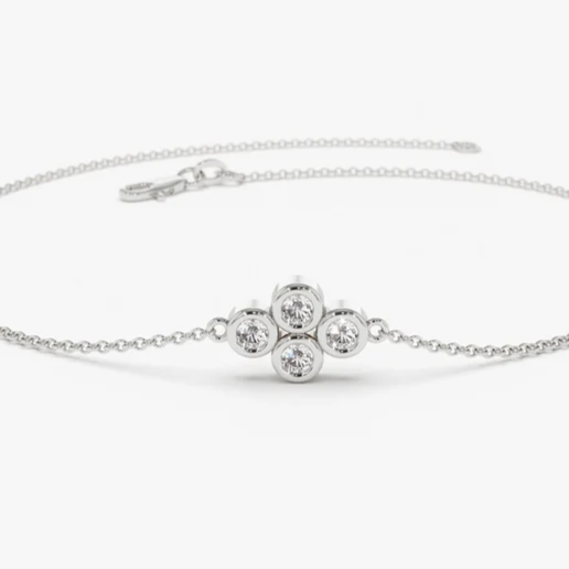 The bracelet features four brilliant lab-grown diamonds, carefully set in a cluster formation. Each diamond is hand-selected for its exceptional clarity, brilliance, and fire, making this bracelet a true eye-catcher.