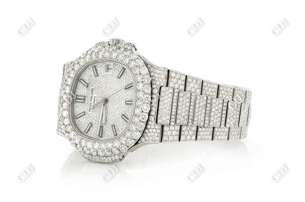 Introducing the Full White Date Just Patek Philippe Iced Out Natural Diamond Watch, where timeless elegance meets unparalleled luxury. This exquisite watch combines the renowned craftsmanship of Patek Philippe with the brilliance of natural diamonds, delivering an iconic accessory that reflects both sophistication and style.