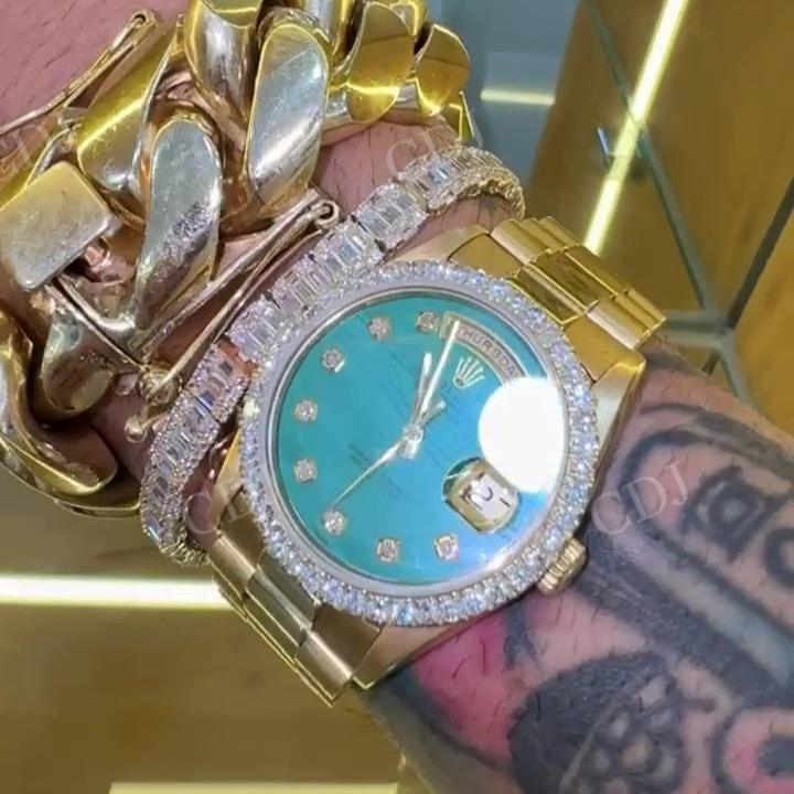 • Luxurious Appeal: The combination of gold, Moissanite diamonds, and the classic Rolex design makes this timepiece a luxury statement piece.