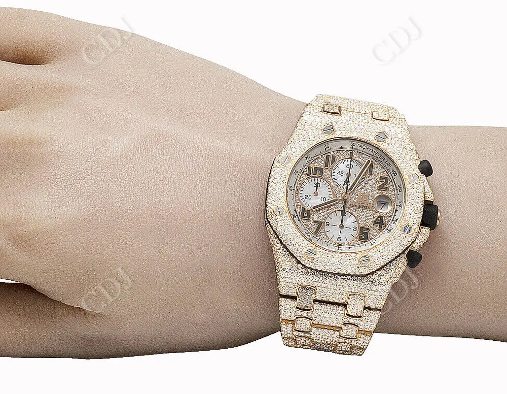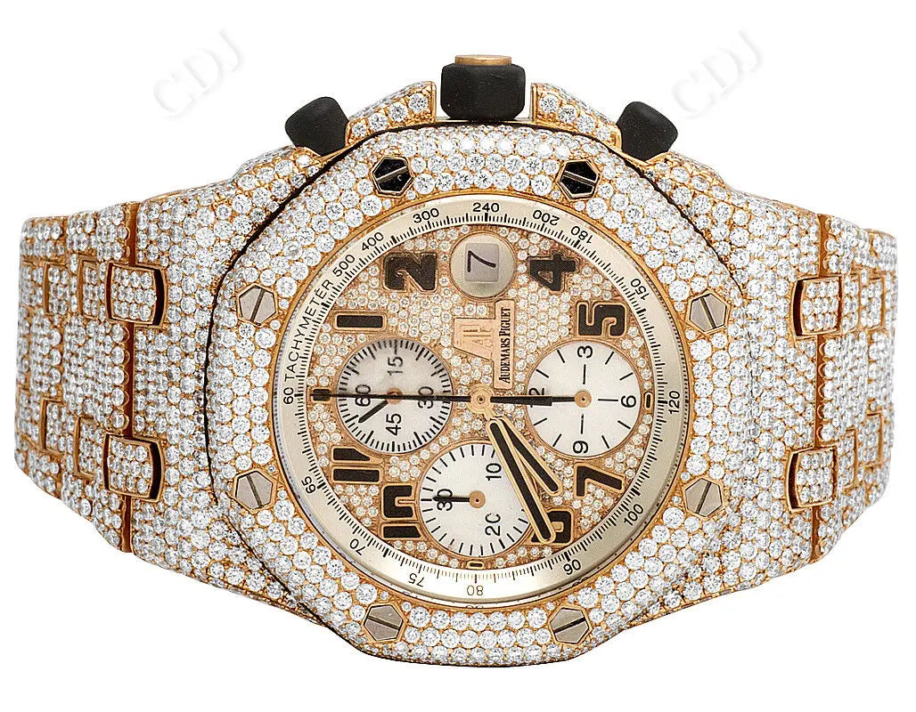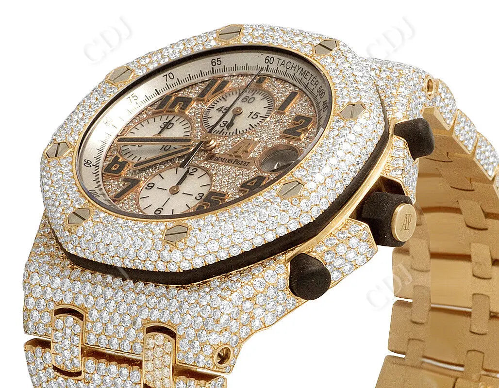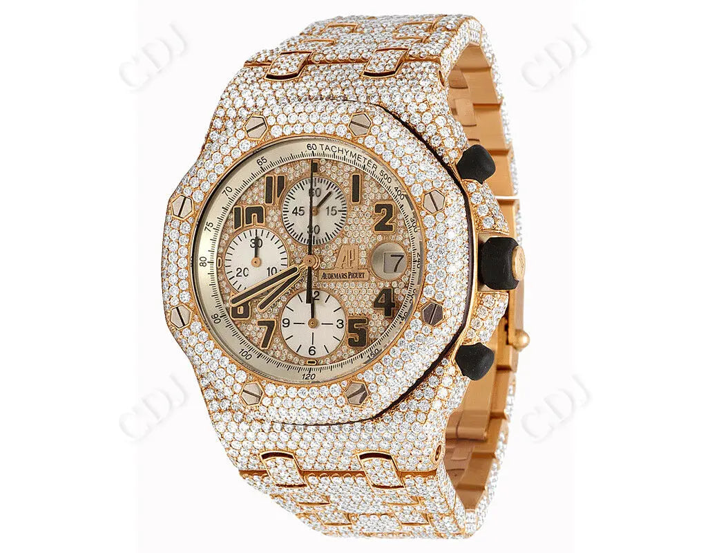 Crafted Elegance: Handmade Lab Grown Diamond Full Rose Gold Plated AP Watch