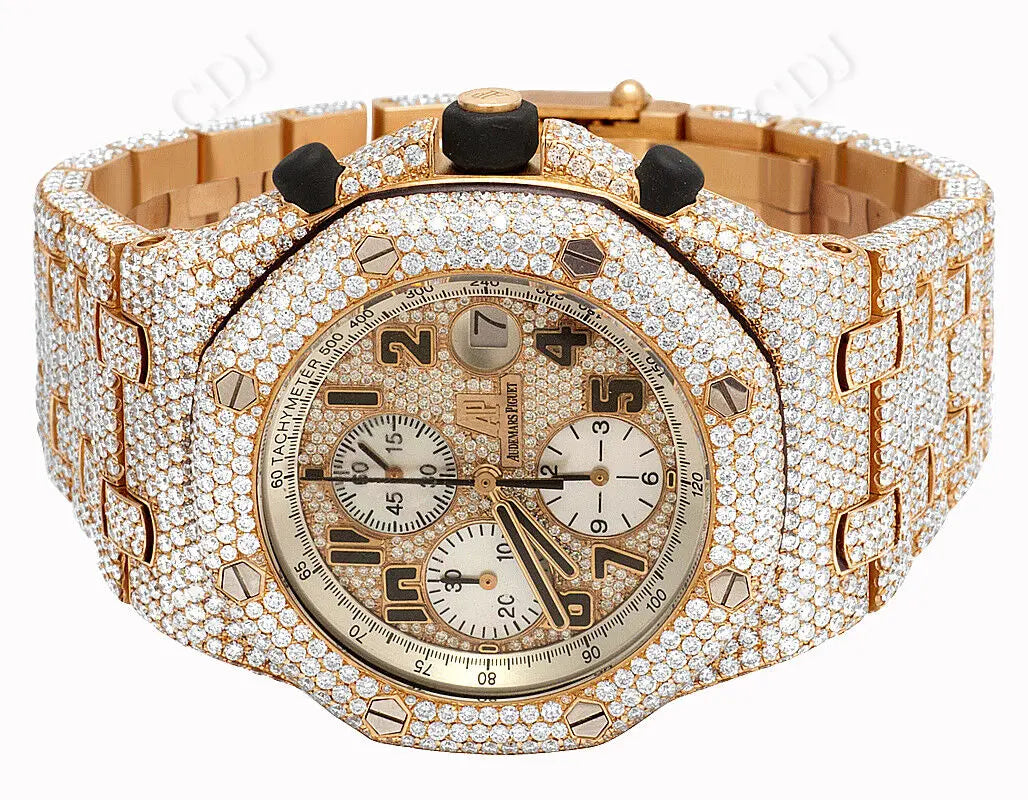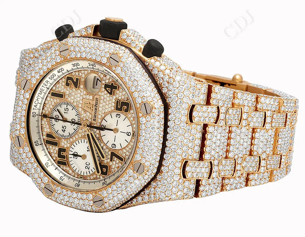 Tags: 36.0 CTWdiamond iced out watchdiamond watchfully ice outgold plated AP-style watchice outluxuryrose gold AP watch
