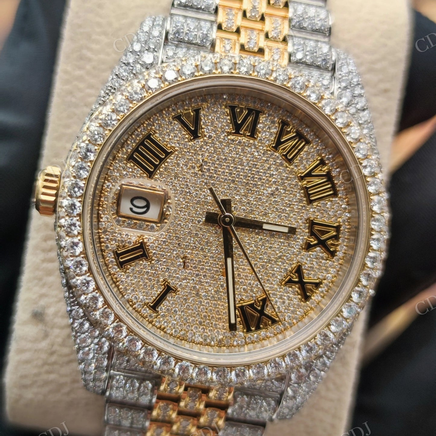 Tags: bold men’s iced watchcustom iced Rolex Jubileeiced out Rolex Jubilee watchmoissanite iced Rolexmoissanite Rolex watchyellow white tone Rolex watch