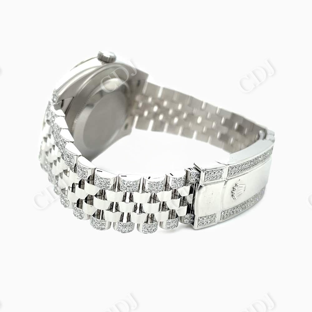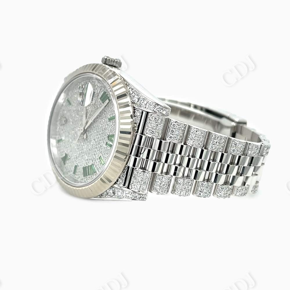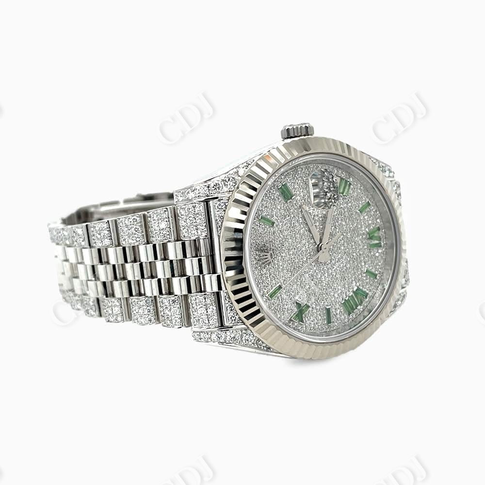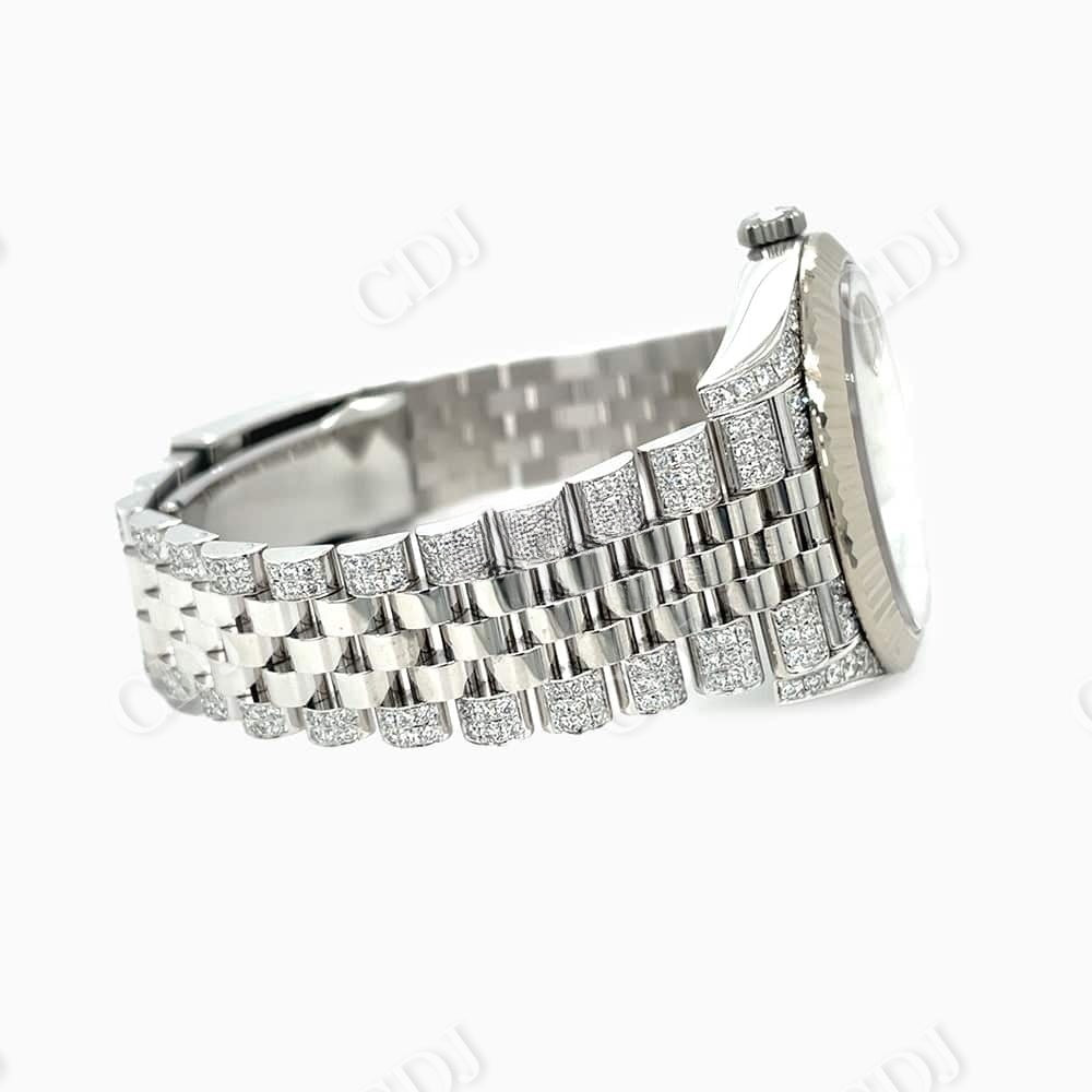 • Every inch of this timepiece, from the bezel to the bracelet, is handset with VVS Moissanite diamonds, delivering unmatched sparkle
