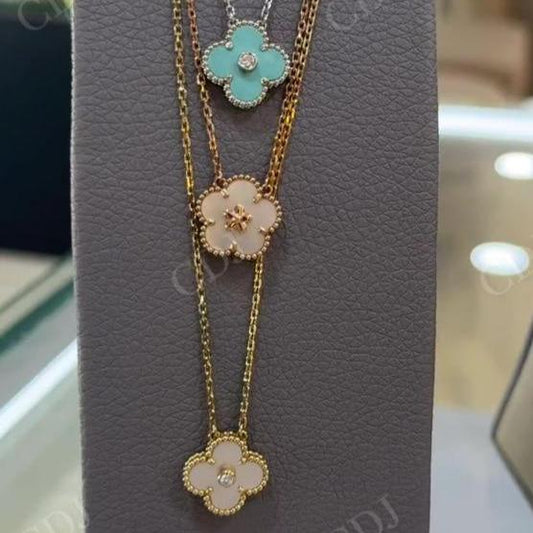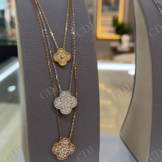 Four Leaf Clover Silver Gold Iced Out Pendant Necklace