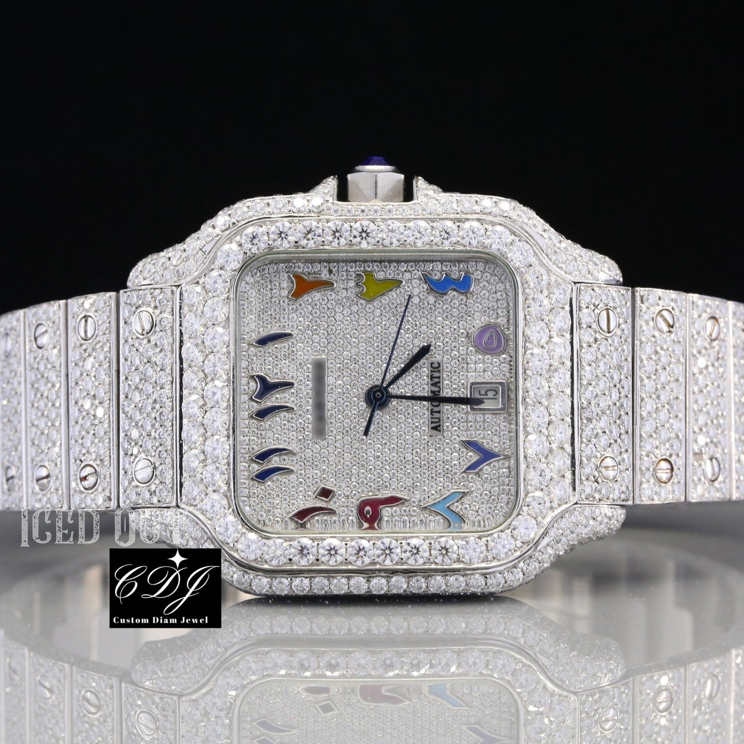 Featuring Moissanite stones, known for their incredible brilliance, this watch offers a level of sparkle that rivals diamonds. The stones are carefully set across the dial, bezel, and band for a dazzling effect that catches the light from every angle, ensuring you stand out in any crowd.