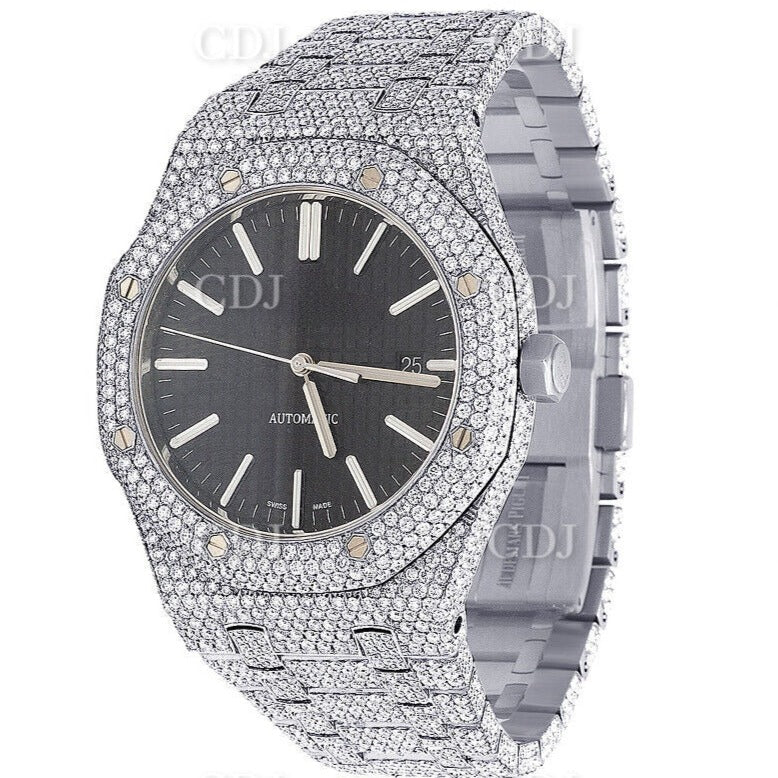 Men's Iced Out Custom Black Dial Hip Hop Moissanite Bling Watch