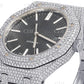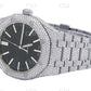 The black dial and full ice setting make this watch visually striking and perfect for making a statement.