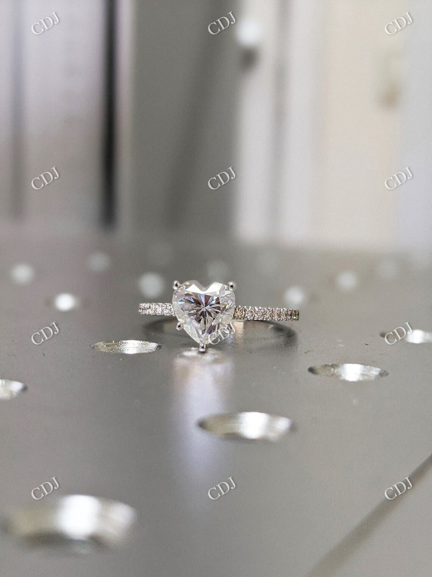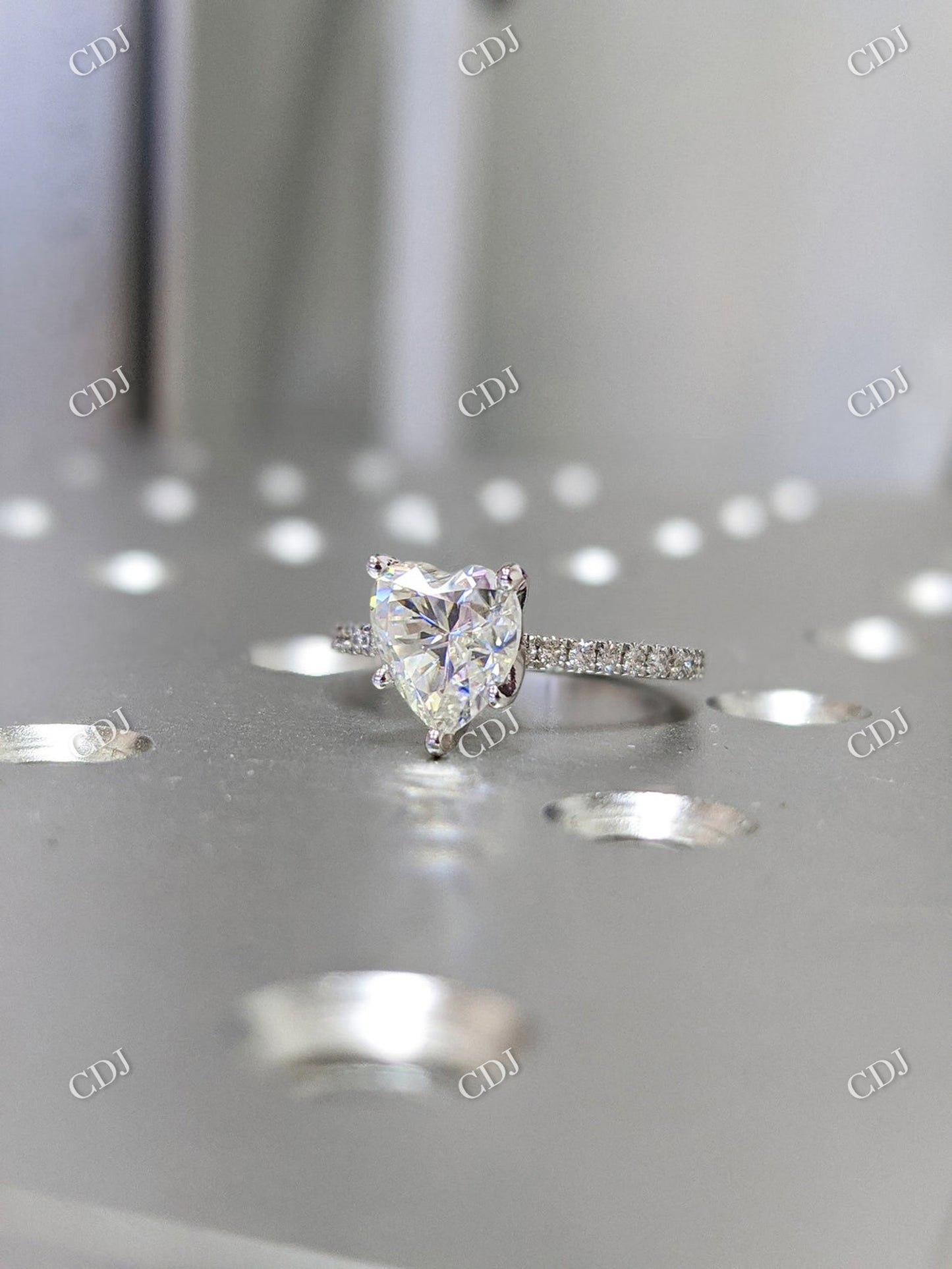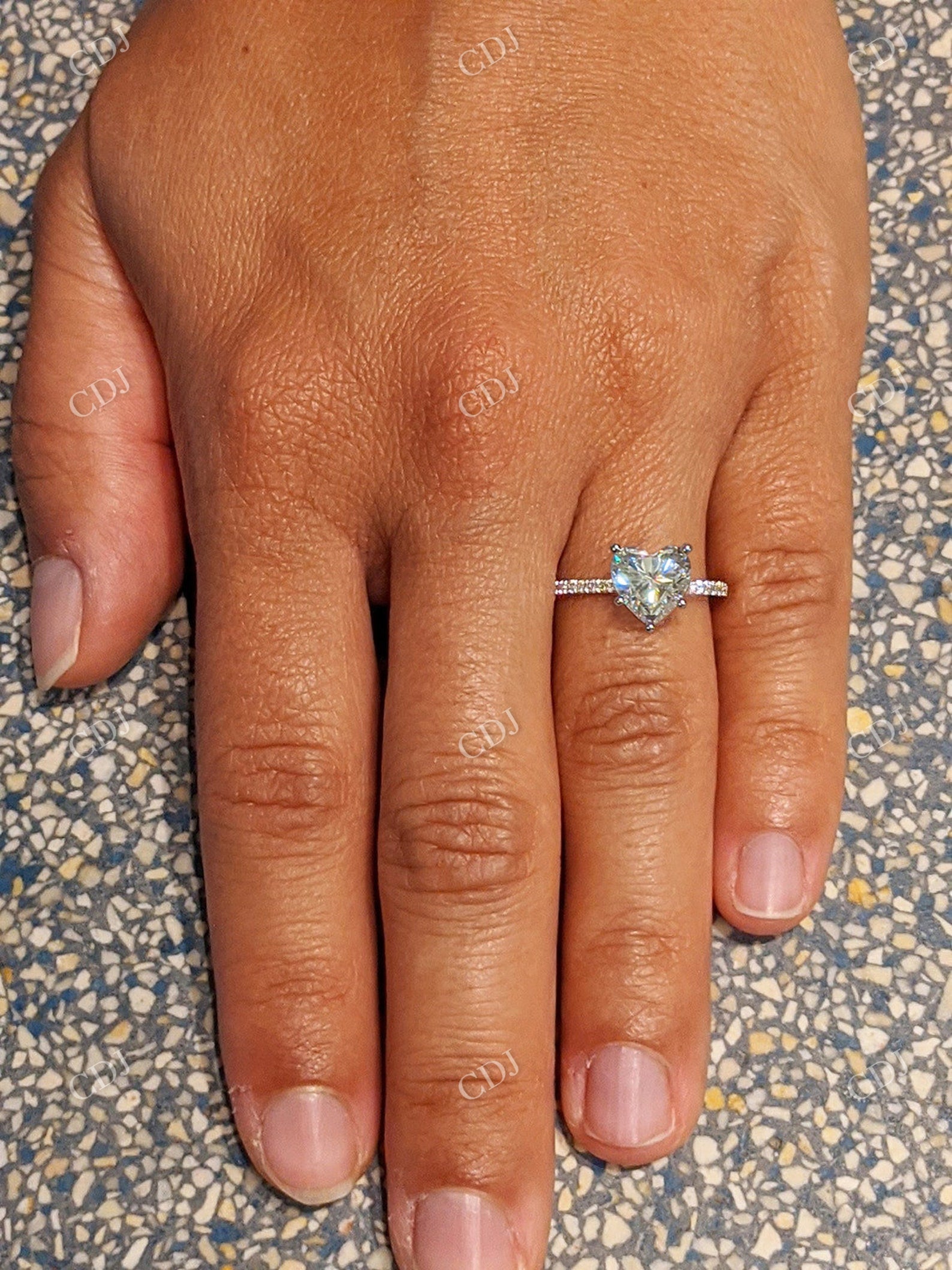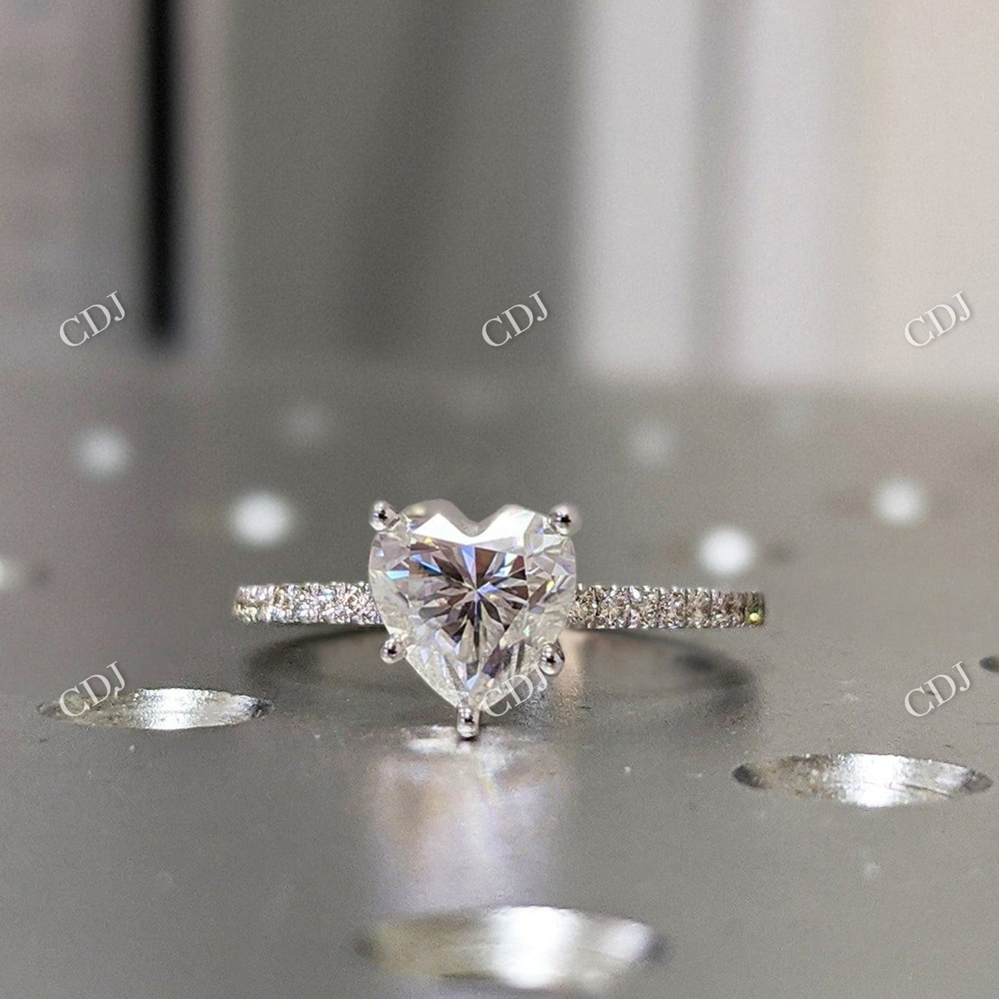The heart-shaped moissanite at the center of this ring is a stunning symbol of love and affection. Moissanite is known for its exceptional brilliance and fire, and the heart shape only enhances its romantic appeal. It sparkles beautifully, making it the perfect choice for a meaningful and elegant engagement ring.