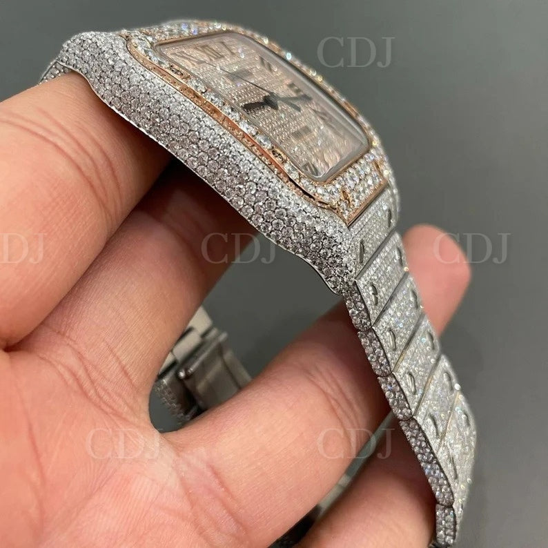 The Luxury Cartier Customized Automatics VVS Moissanite Diamond Watch 24 To 27CTW (Approx) is a stunning symbol of sophistication and precision. Crafted by the iconic luxury brand Cartier, this timepiece features exquisite VVS Moissanite diamonds and an elegant automatic movement, offering a unique combination of high-end functionality and unparalleled style. Whether you’re a connoisseur of fine watches or simply someone looking to elevate their accessory game, this watch is sure to captivate attention and become a cherished part of your collection.