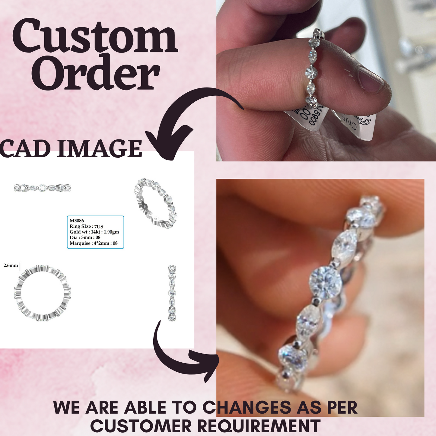 Yes, we offer full customisation of designs as required by our customer. A Customer can choose to either customize our existing designs or we can develop new designs from the scratch based on the design/concept provided by you. After receiving the image of design/ information we move on to CAD making and later to jewelry development step by step to make the Jewelry exactly as desired by you.