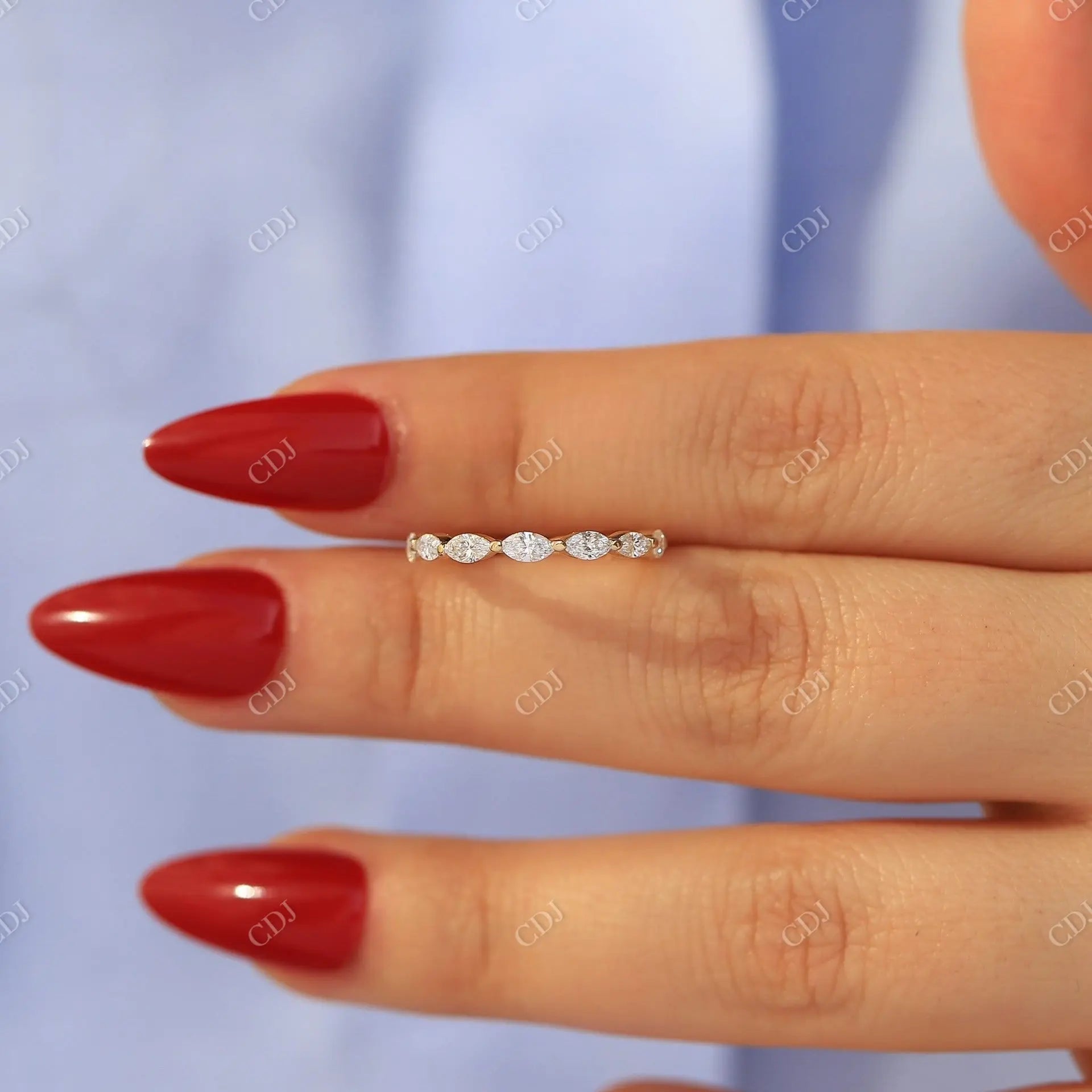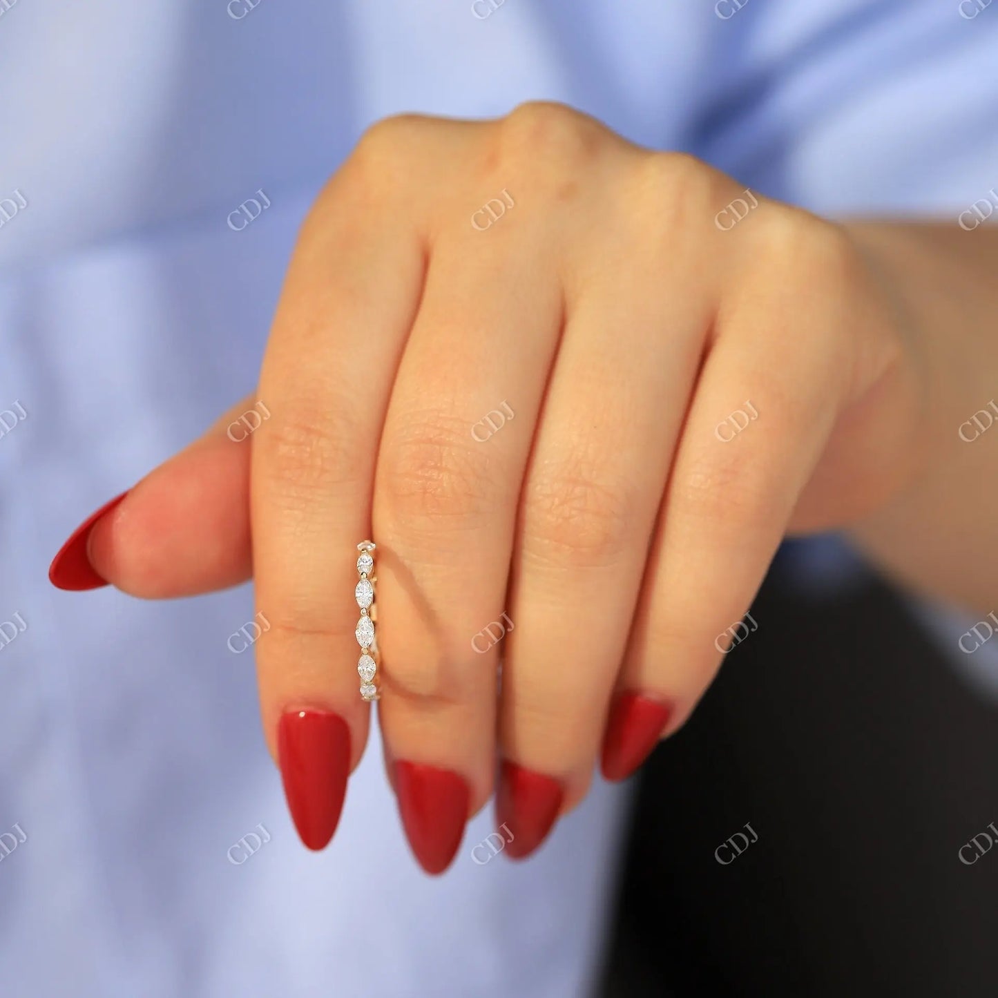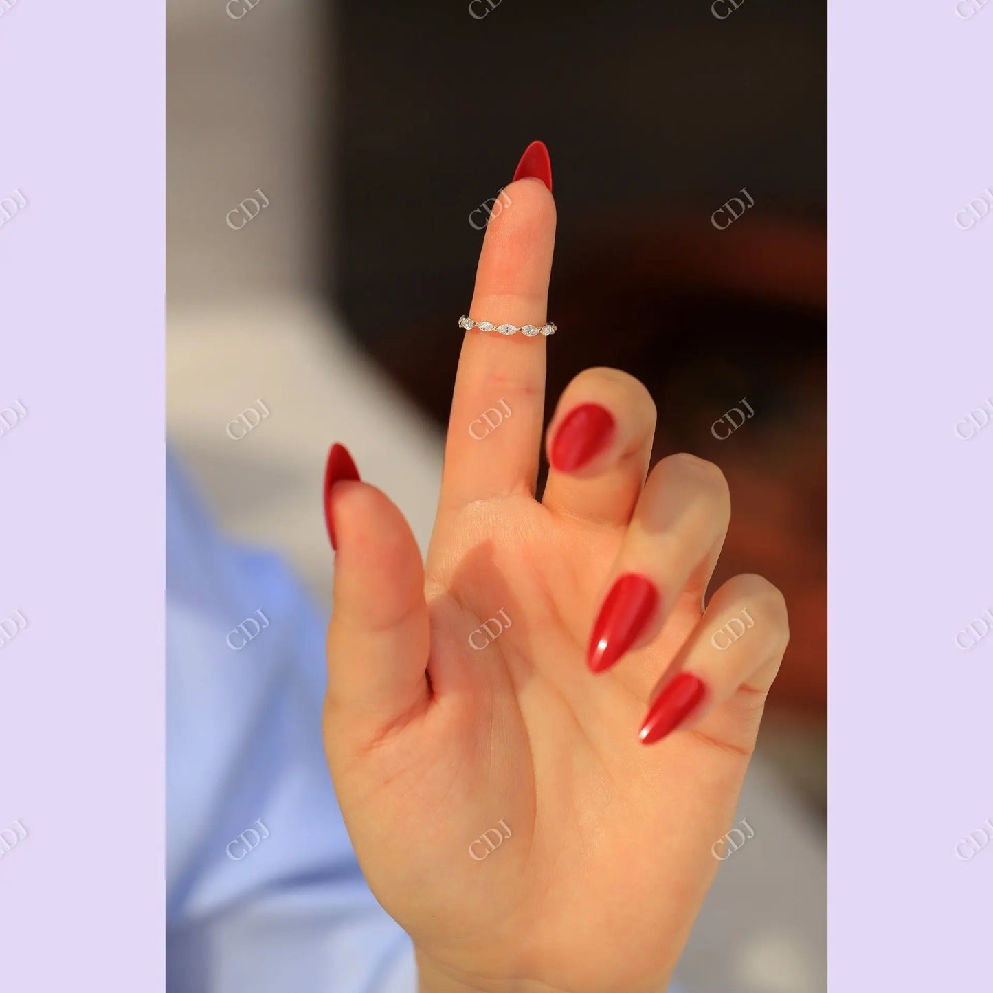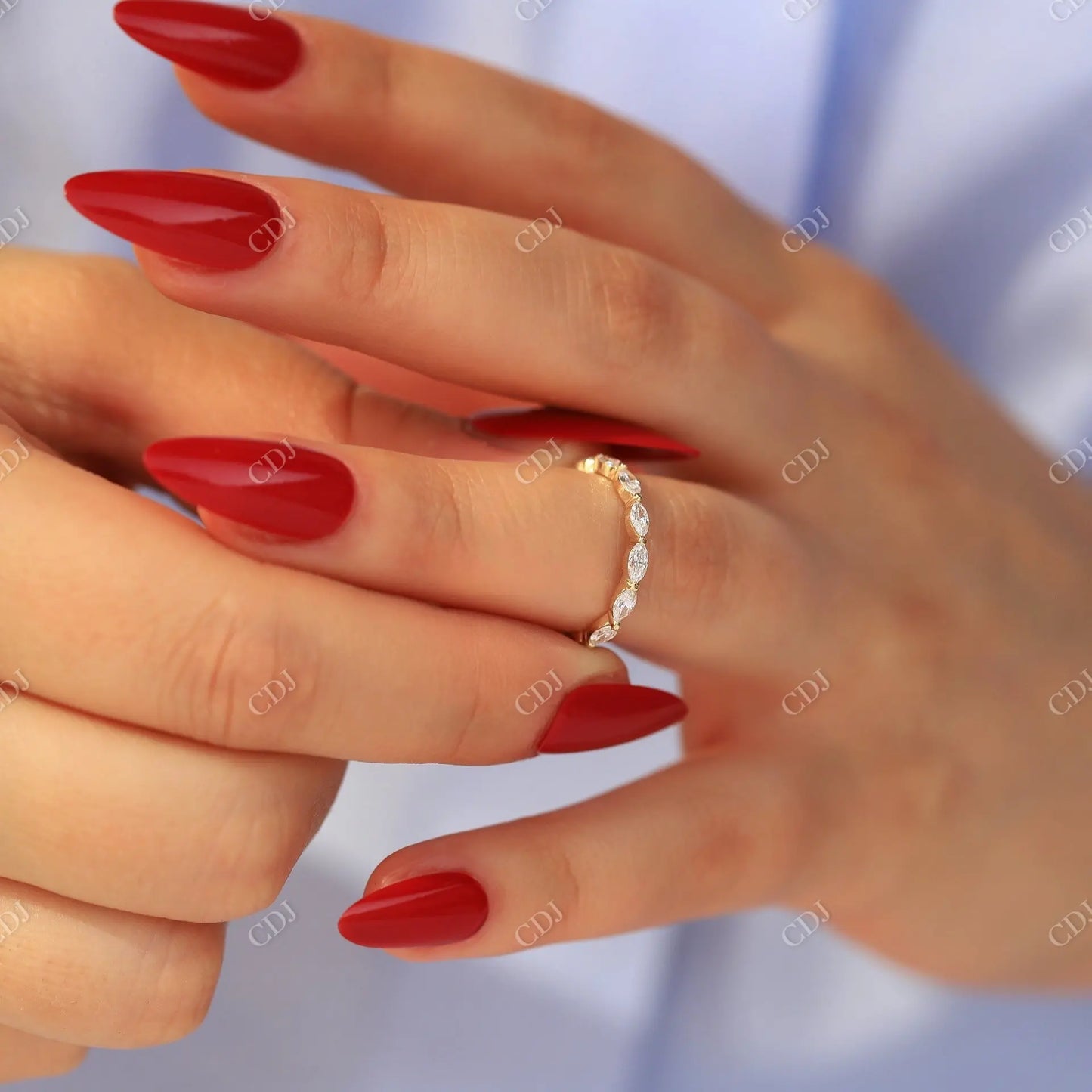 Each marquise stone is precision-set to maximize light reflection, giving this band a uniquely sophisticated silhouette. The elongated marquise shape symbolizes love that stretches into infinity—making this ring a beautiful expression of enduring commitment. Whether worn solo, stacked, or paired with an engagement ring, its graceful sparkle is undeniable.