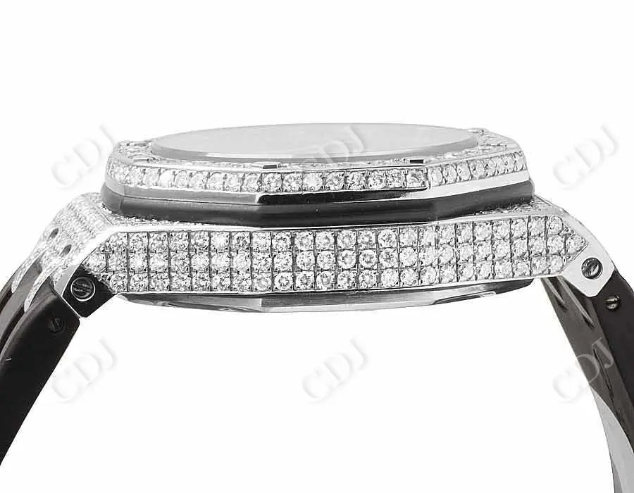 • Fully Iced Design: Moissanite stones cover every surface — bezel, dial, and band — for a radiant, all-over glow.