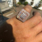 Designed with oversized brilliance and undeniable attitude, this ring embodies the spirit of Hip Hop fashion. At the core is a stunning, multi-faceted big diamond-style CZ centerpiece, surrounded by dozens of micro-set stones that amplify the shine from every angle.