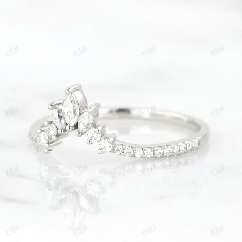 Minimalist Curved Marquise Cut Diamond Wedding Band