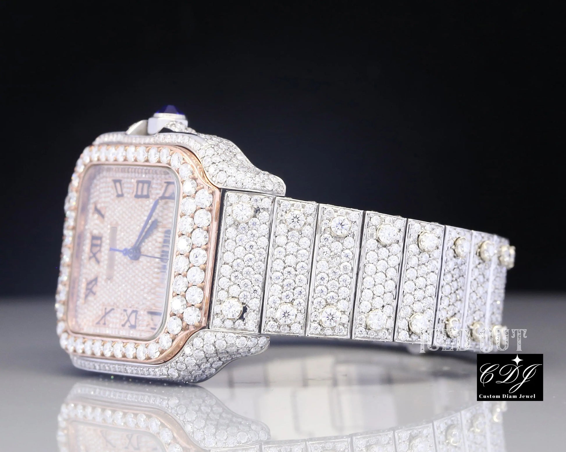 Moissanite Studded Iced Out Custom Cartier Watch