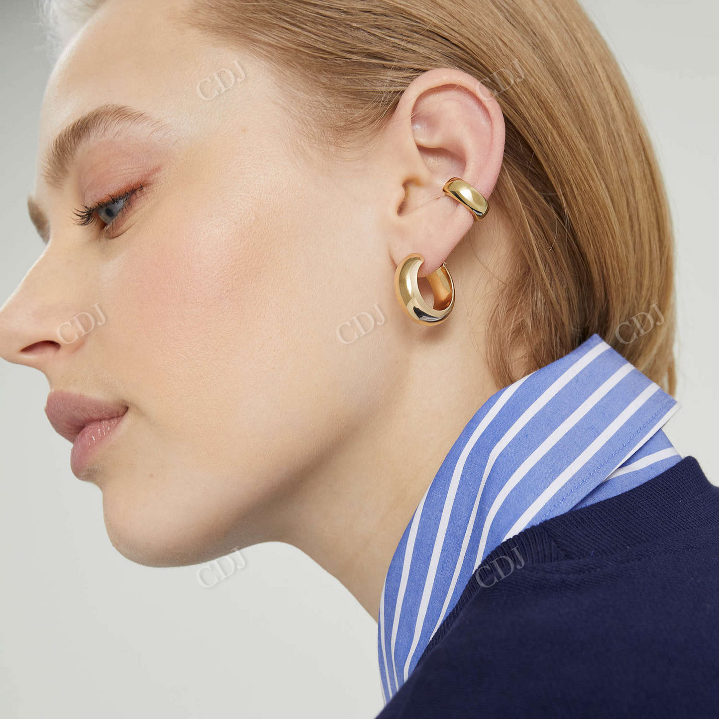 18K Solid Gold Marshmallow Shape Cuff Earrings