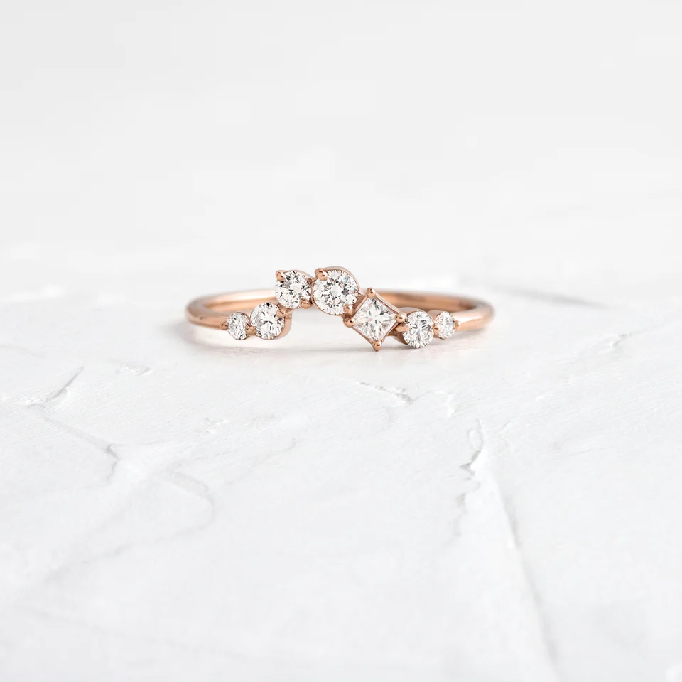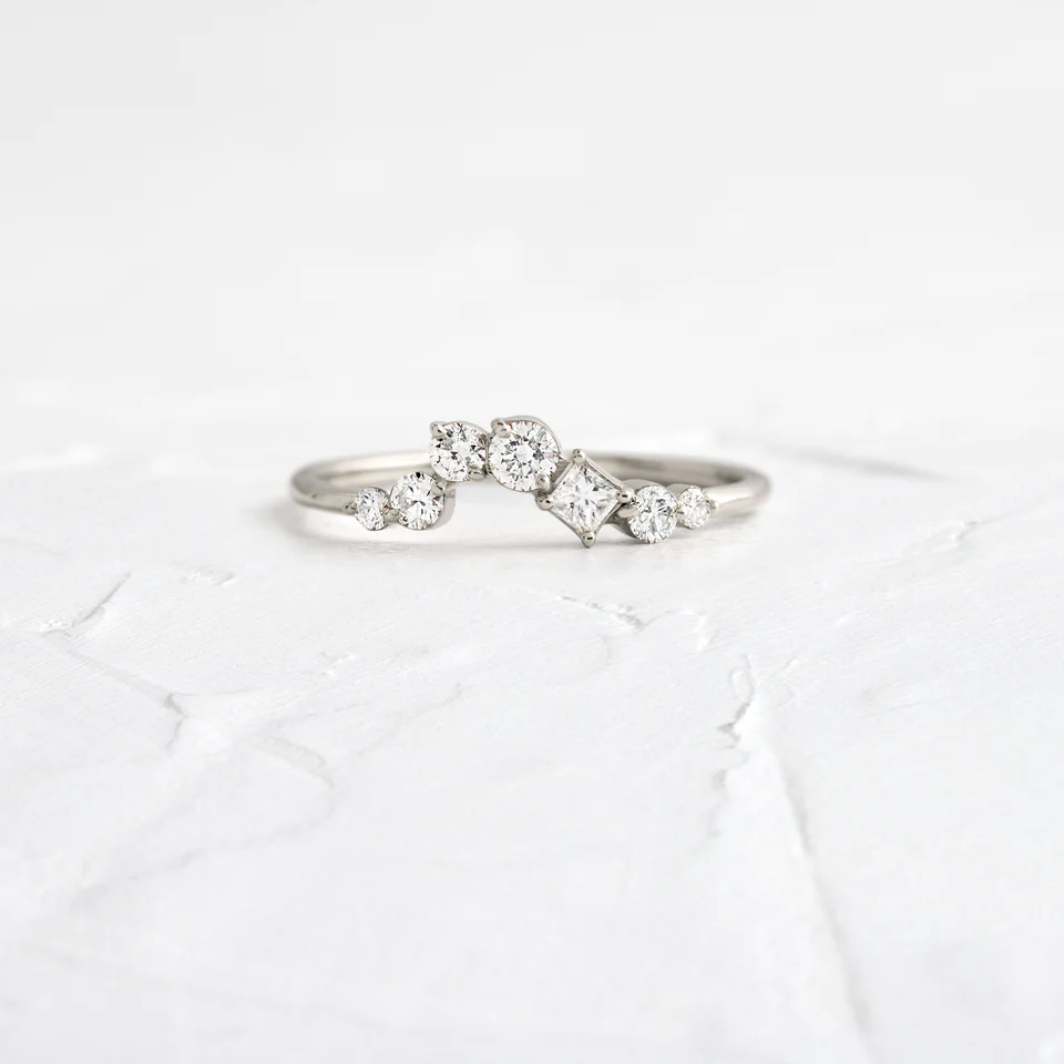 Perfect for modern brides and grooms who value exceptional craftsmanship, this band offers a distinctive silhouette that stands out in any bridal stack — or shines beautifully when worn solo.
