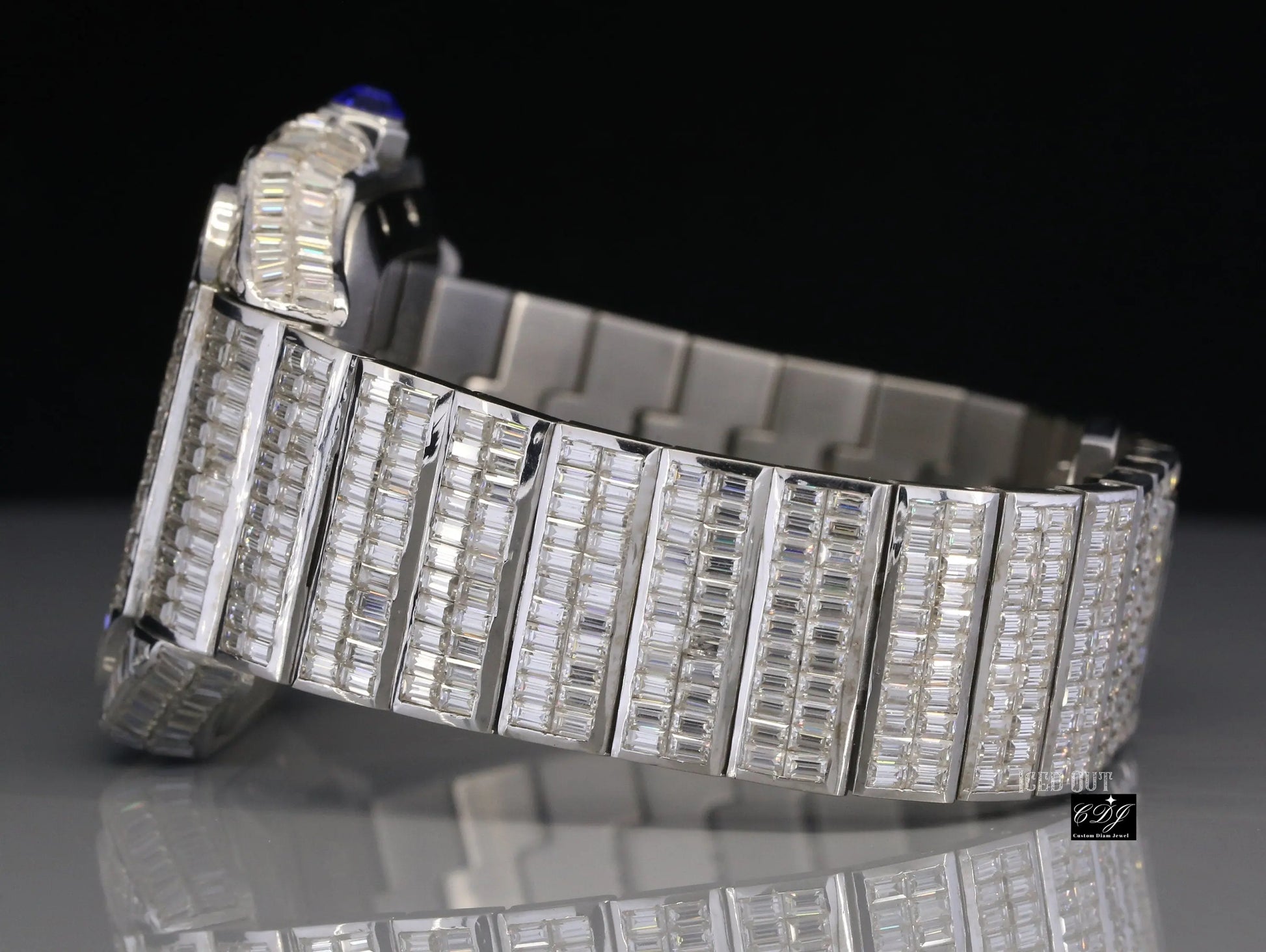 Each baguette-cut diamond is meticulously set to maximize sparkle and fire, reflecting light from every angle for unmatched radiance. Crafted with precision and care, this fully iced-out watch not only showcases luxury but also embodies timeless elegance with a modern twist.