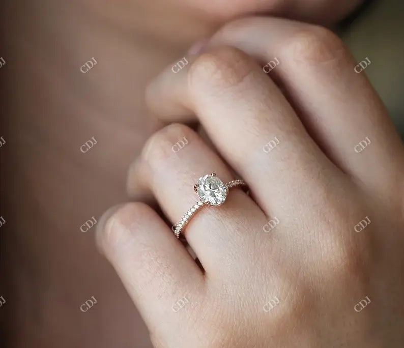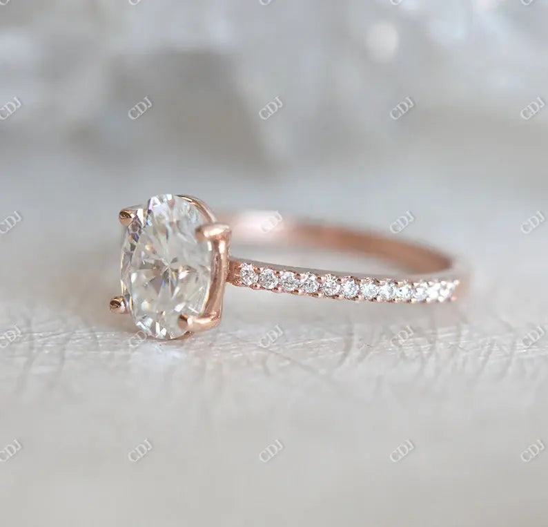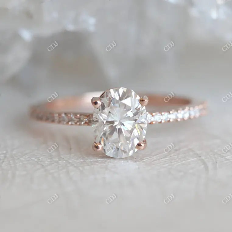Oval Cut Moissanite Pave Diamond Engagement Ring