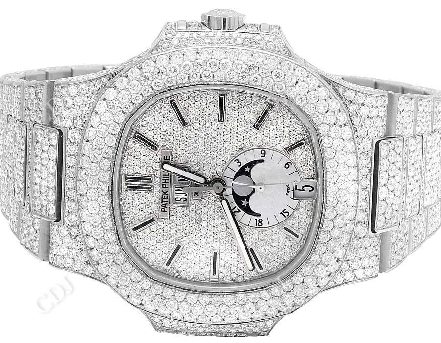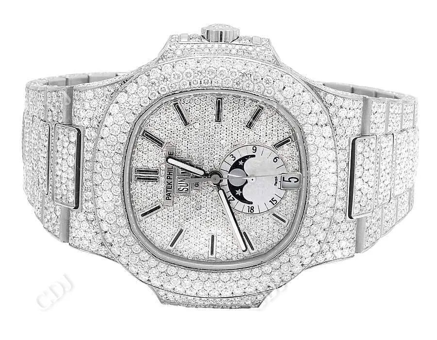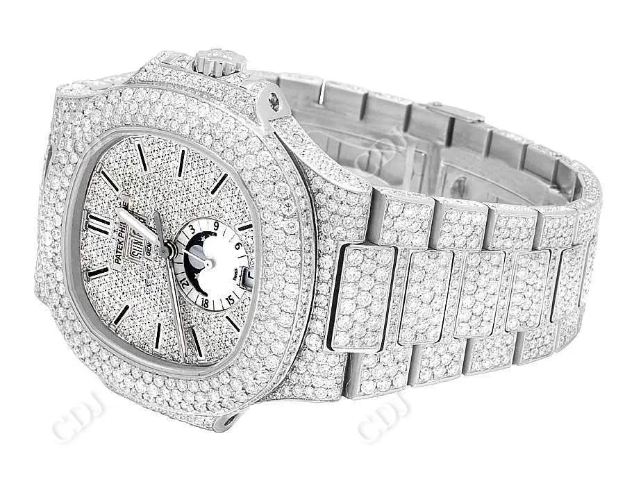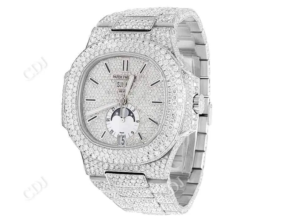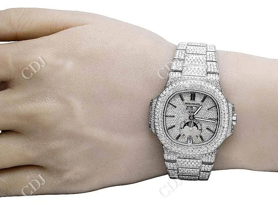 Yellow White Moissanite Stainless Steel Iced Out Dial Cartier Watch