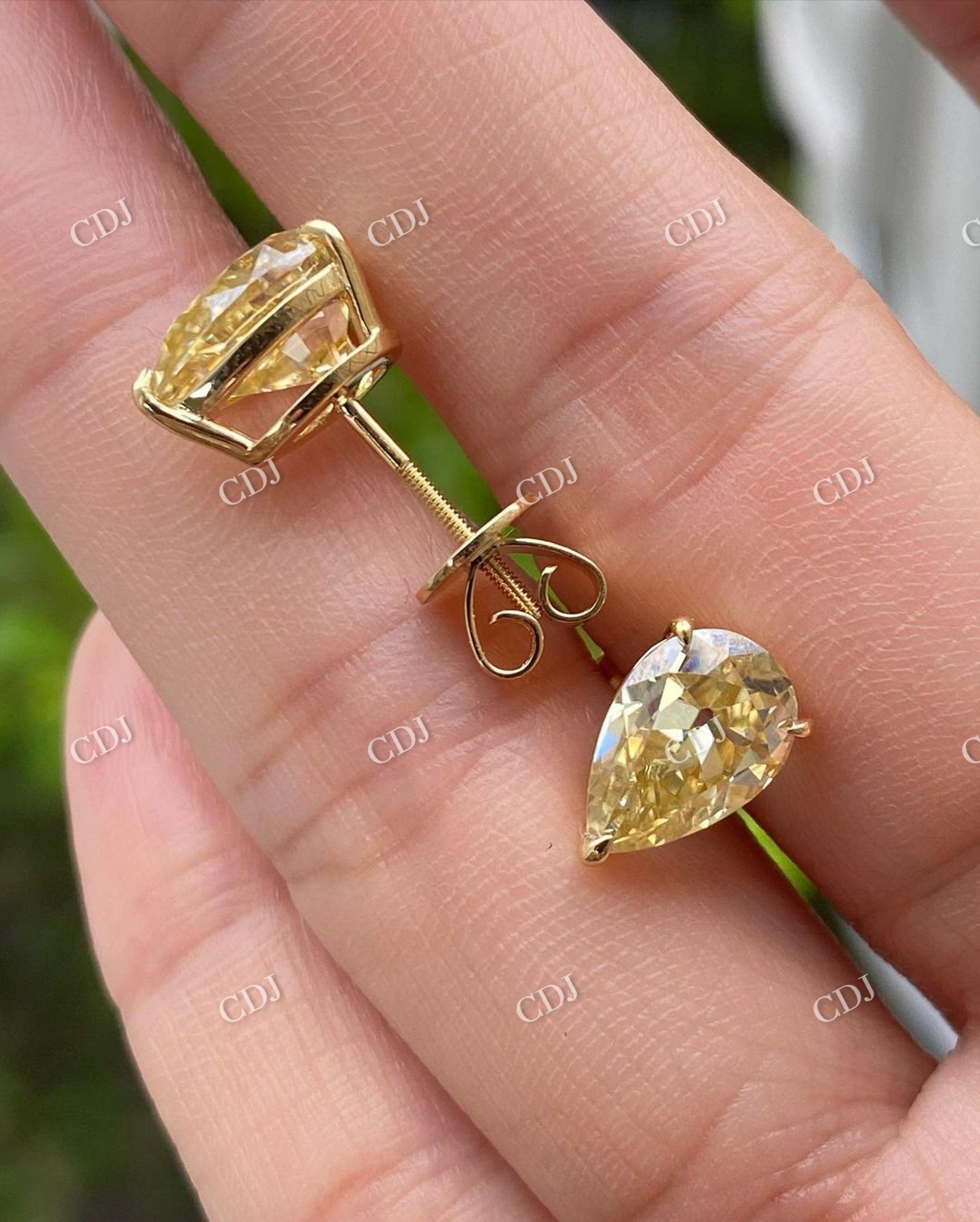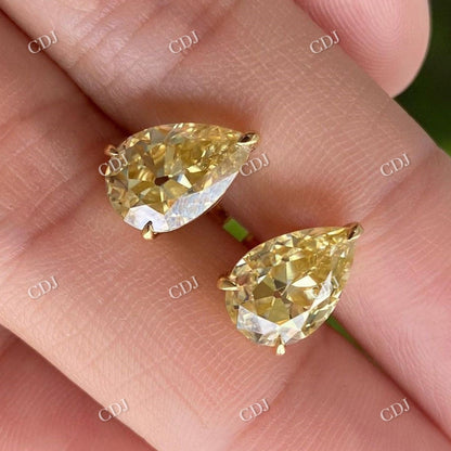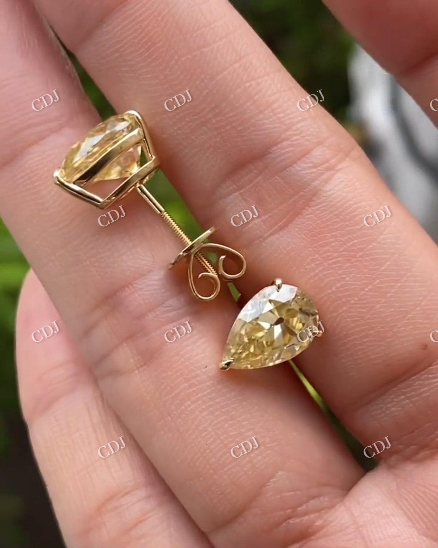 Pear Cut Canary Yellow Moissanite Solid Gold Stud Earrings