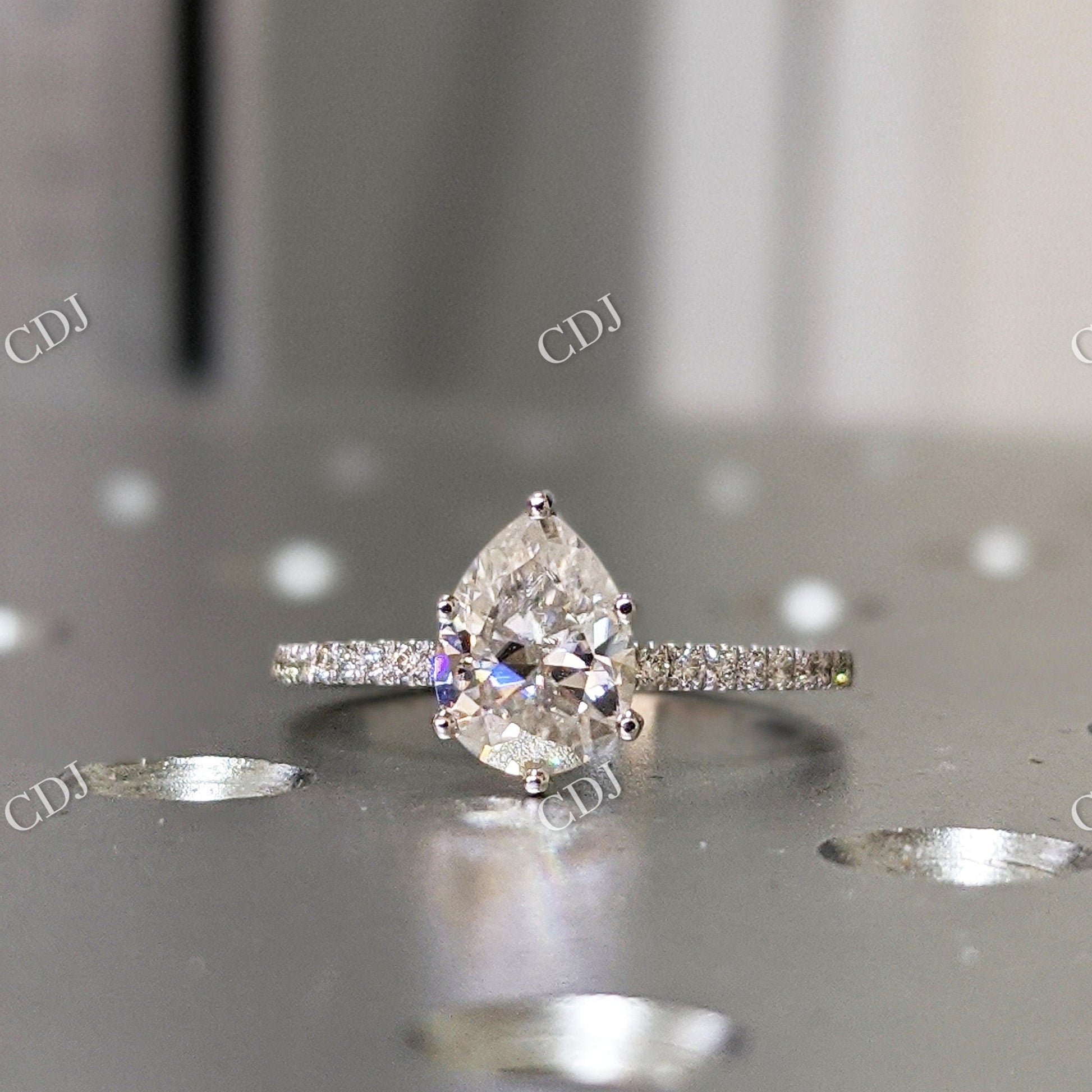 • Half Eternity Design: The half eternity band features a continuous row of smaller moissanite stones along the front of the band, creating a stunning sparkle that complements the larger pear-shaped stone. The half eternity design represents your eternal love, offering brilliance without overwhelming the overall design.