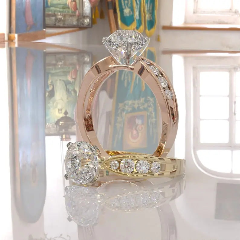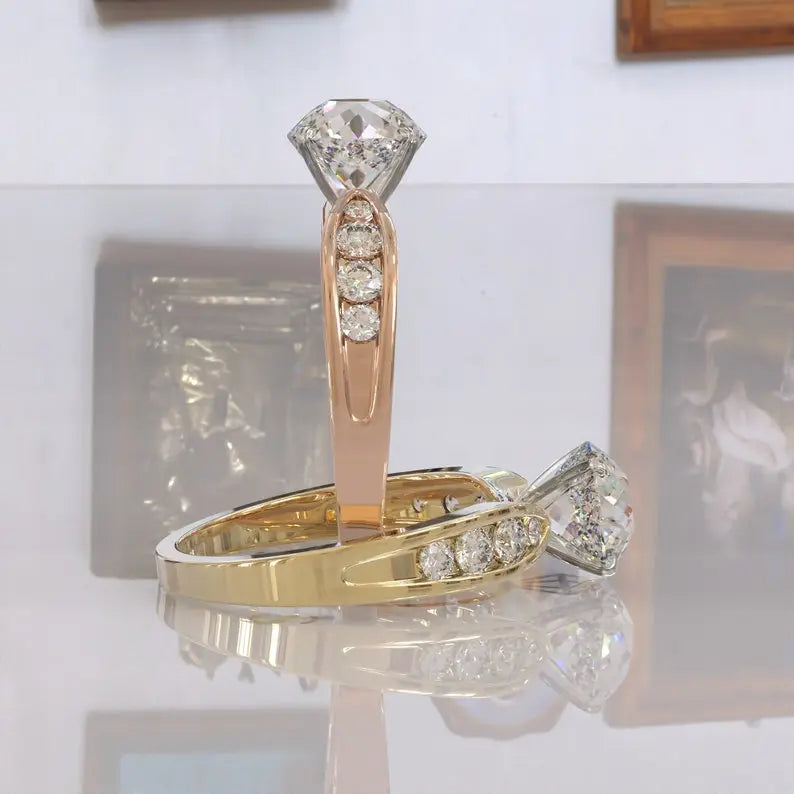 Make your proposal unforgettable with the Portuguese Cut Moissanite Engagement Ring – a striking blend of timeless elegance and modern brilliance. This ring features a precision-cut moissanite in the rare and captivating Portuguese style, known for its intricate faceting and unmatched sparkle.