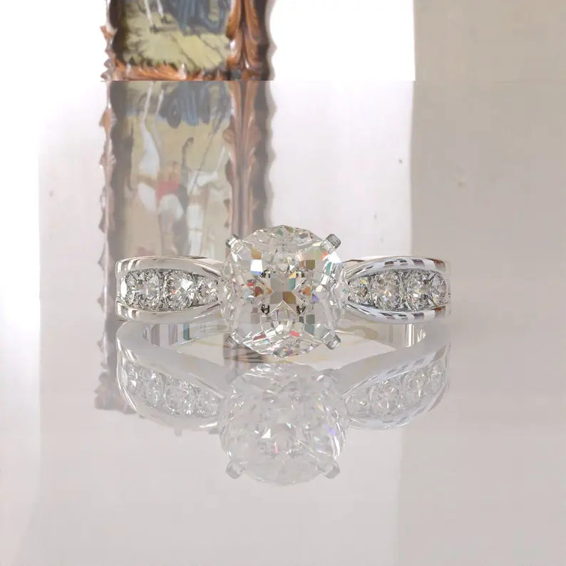 The Portuguese cut is admired for its complexity and the way it maximizes a gem’s brilliance. When applied to moissanite—a stone already known for its superior fire and sparkle—the result is a truly mesmerizing engagement ring.