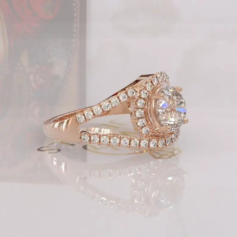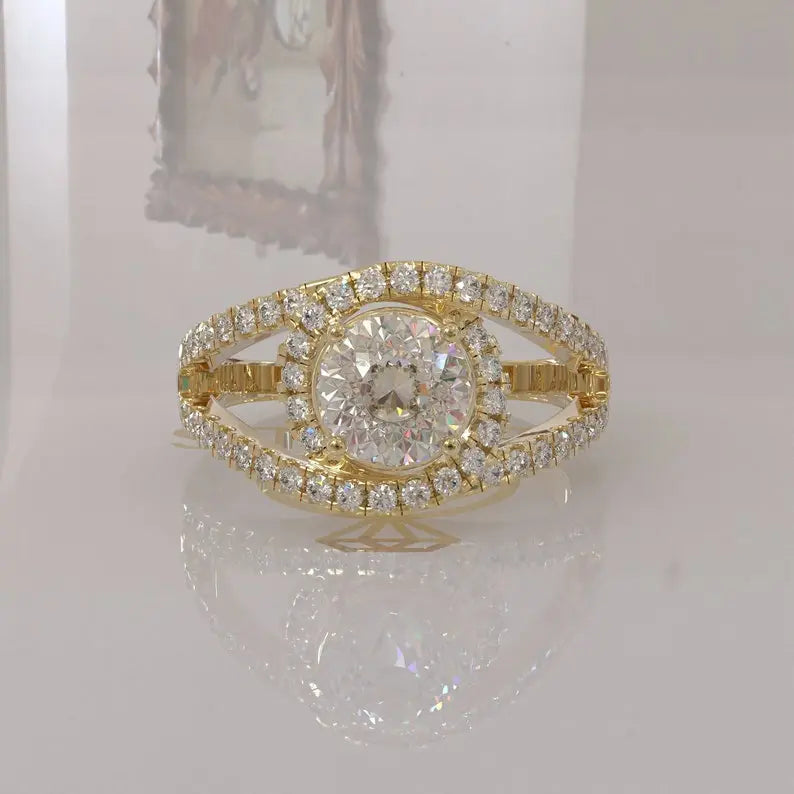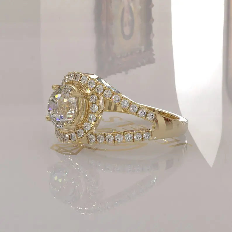 Portuguese Moissanite Halo Ring