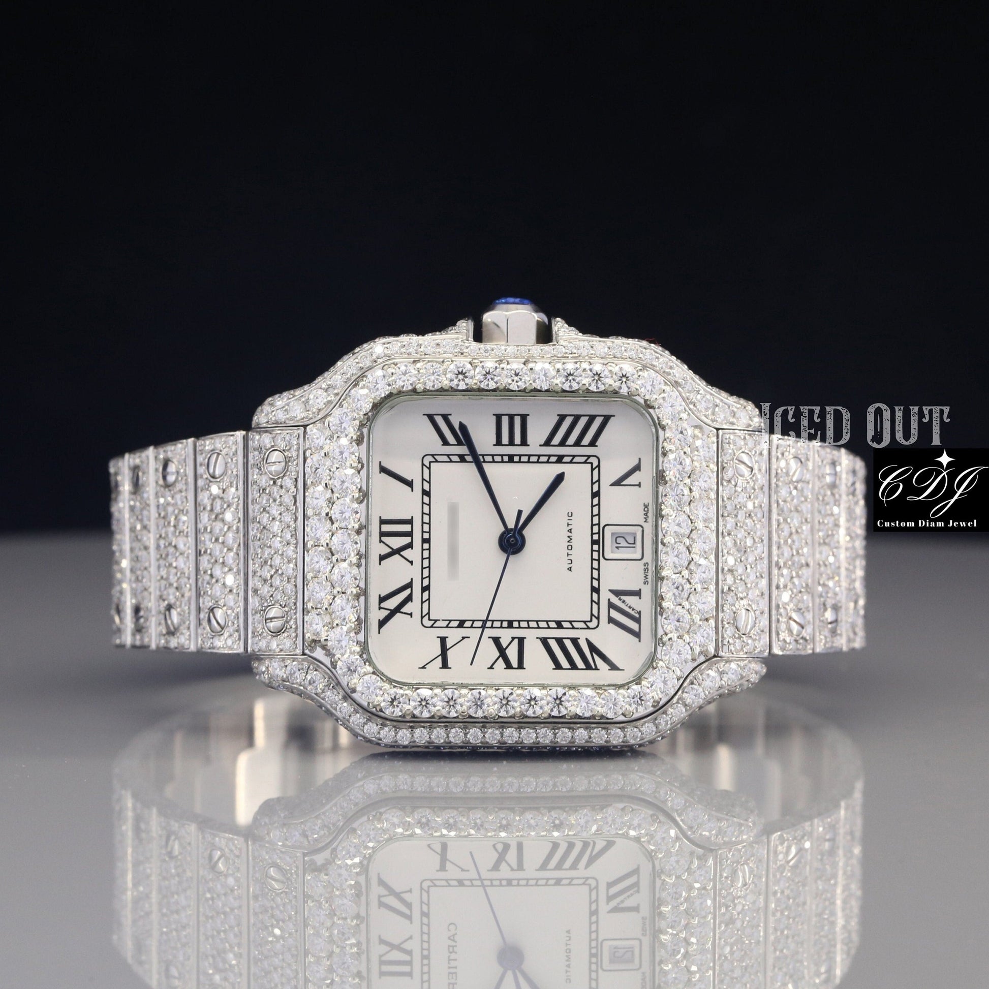 Product Description: Luxuries Moissanite Iced Out Roman Number Dial Cartier Watch