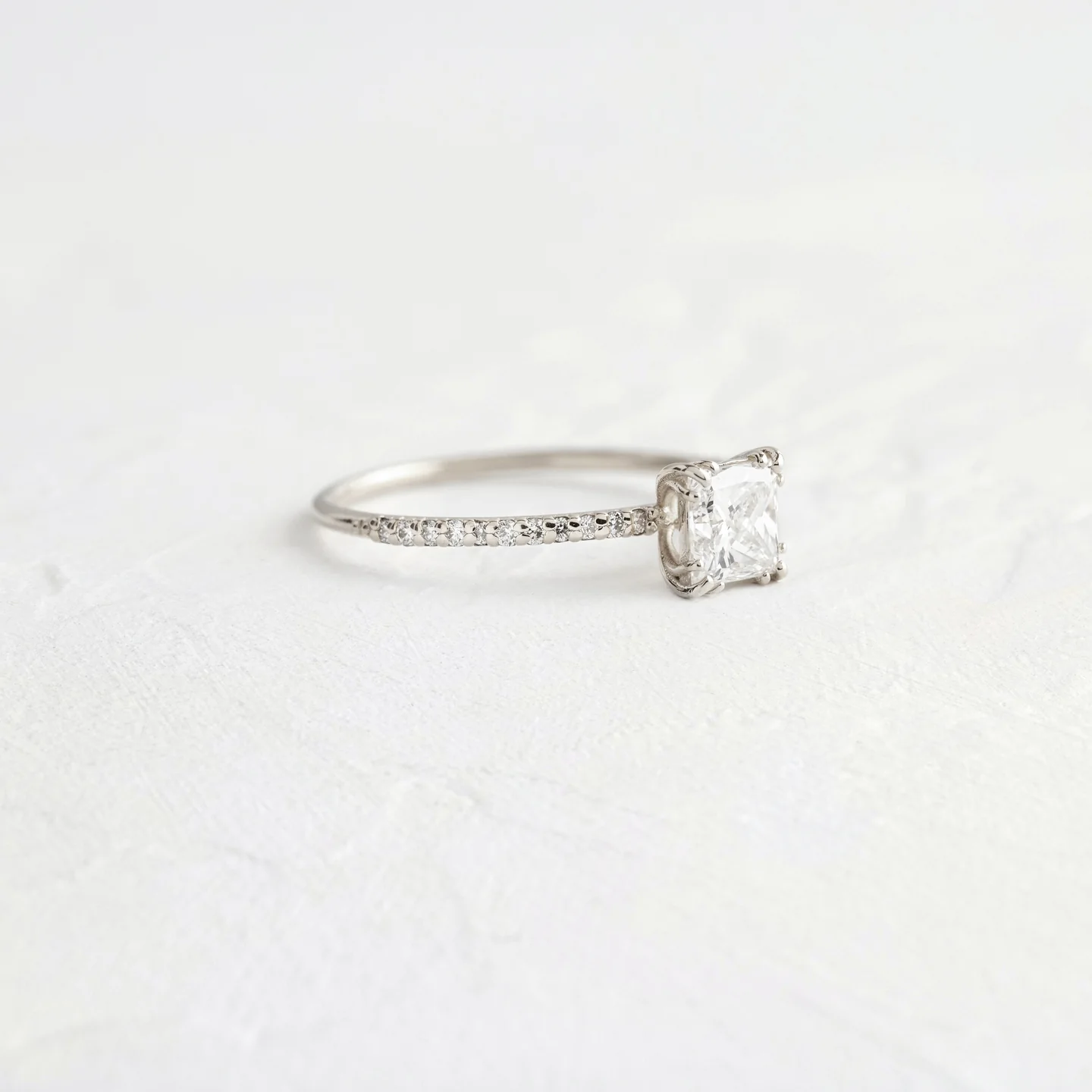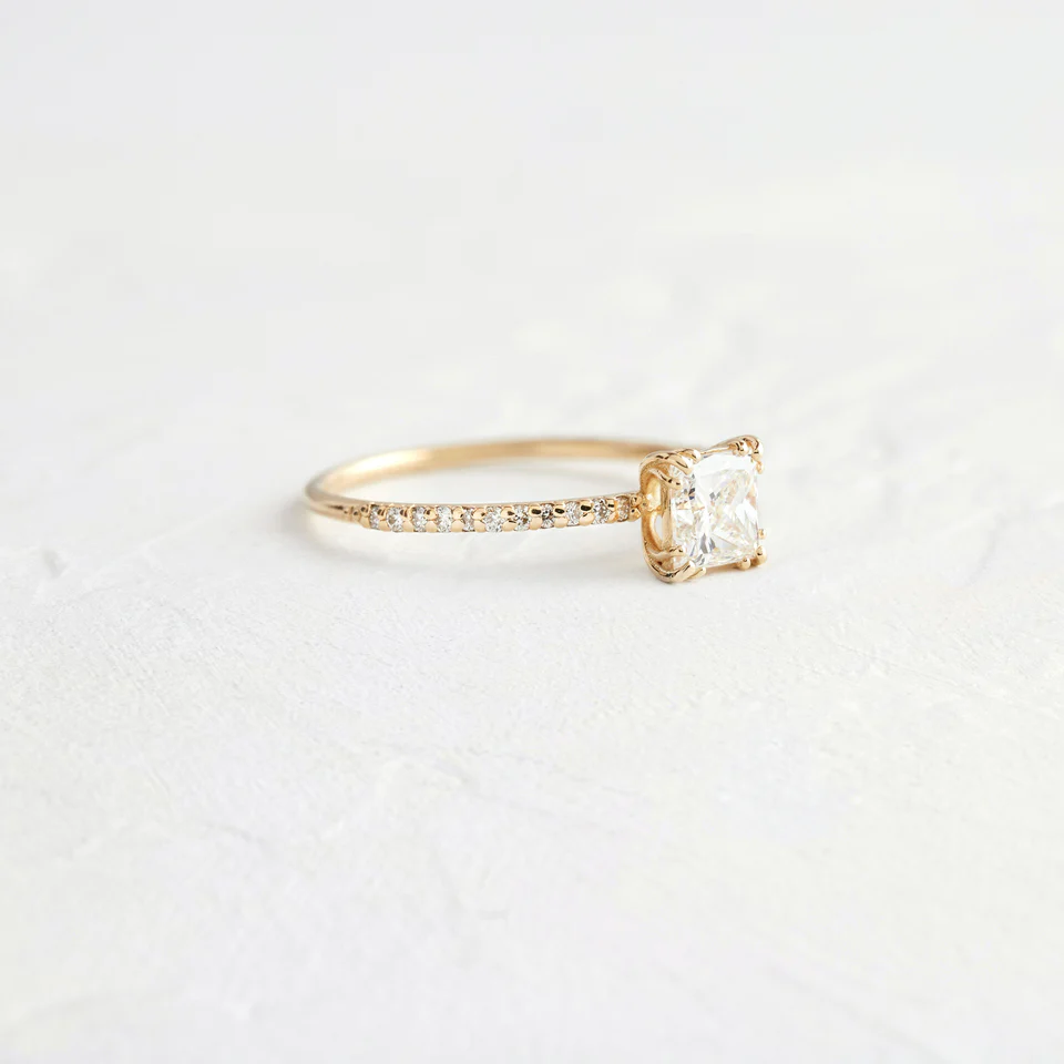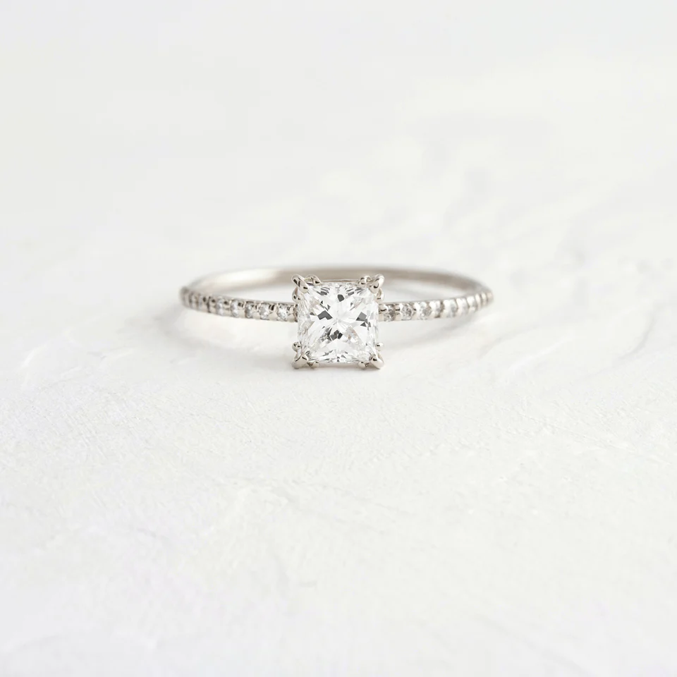 • Stone Shape: Princess cut lab grown moissanite for sharp, geometric brilliance