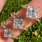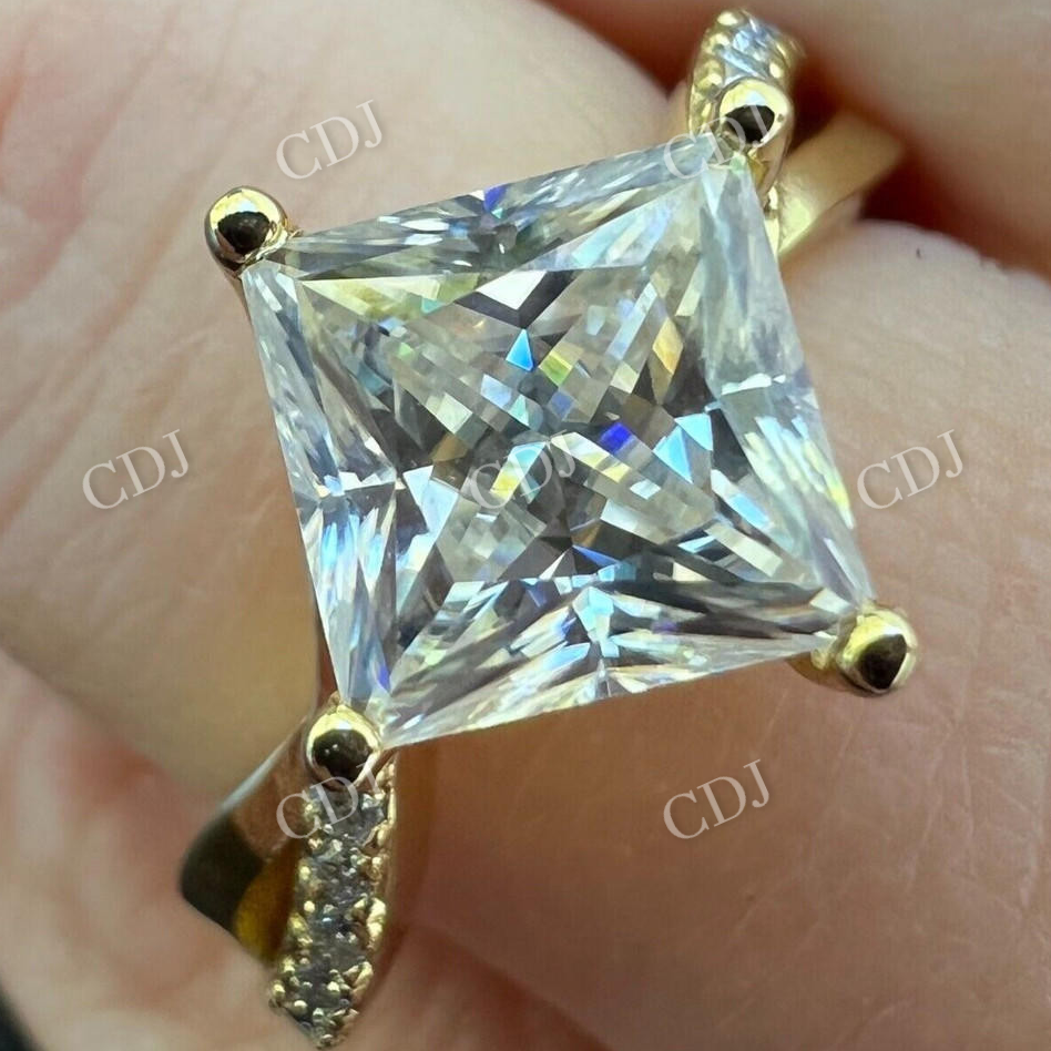 Features a square, brilliant-cut stone with crisp edges and unmatched fire
