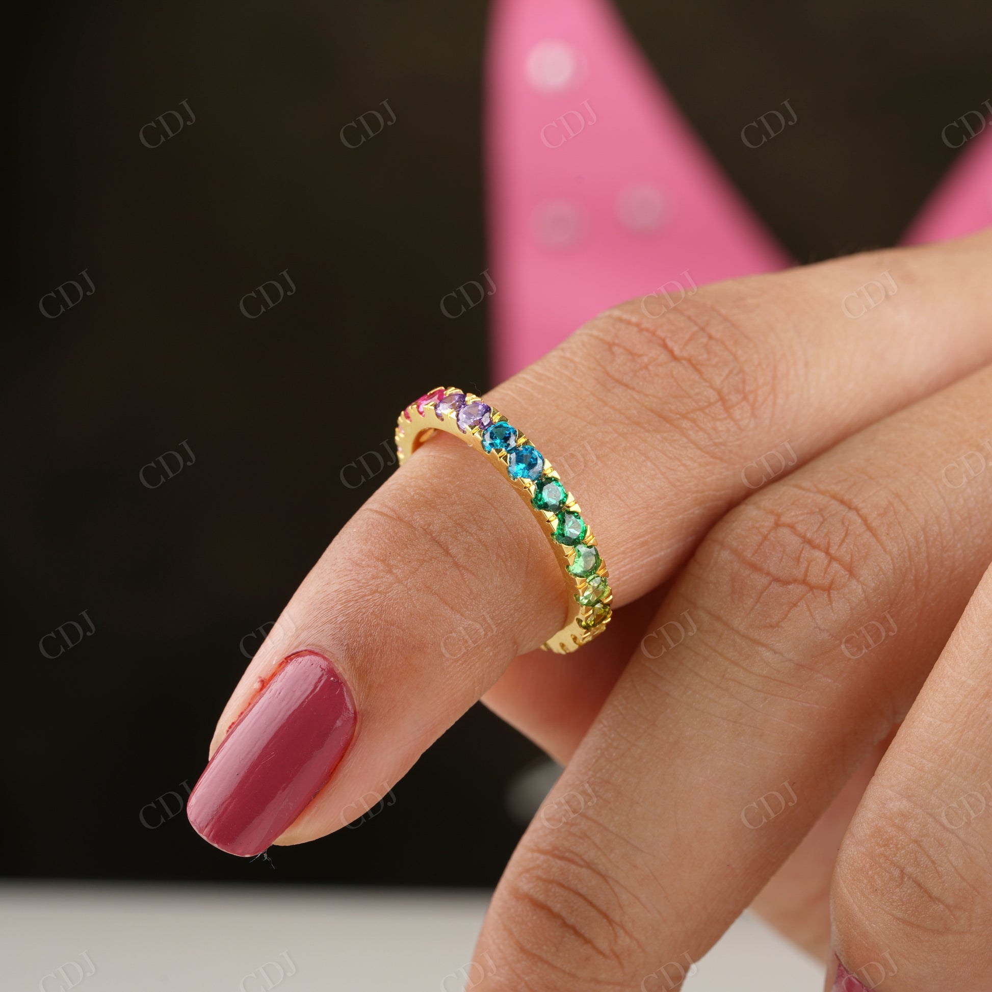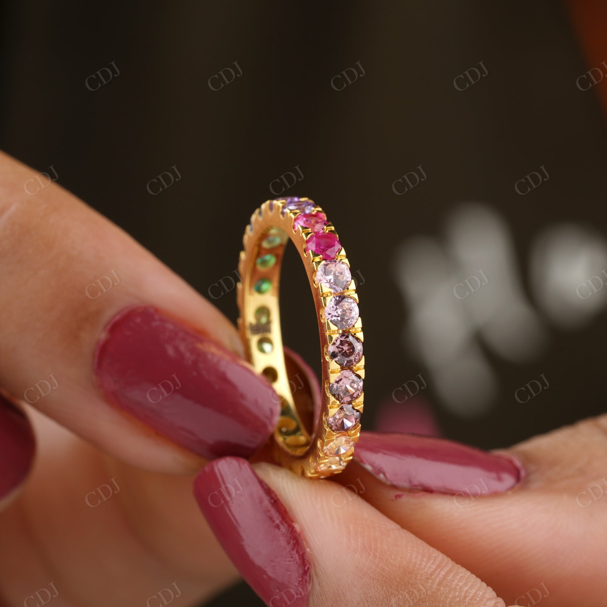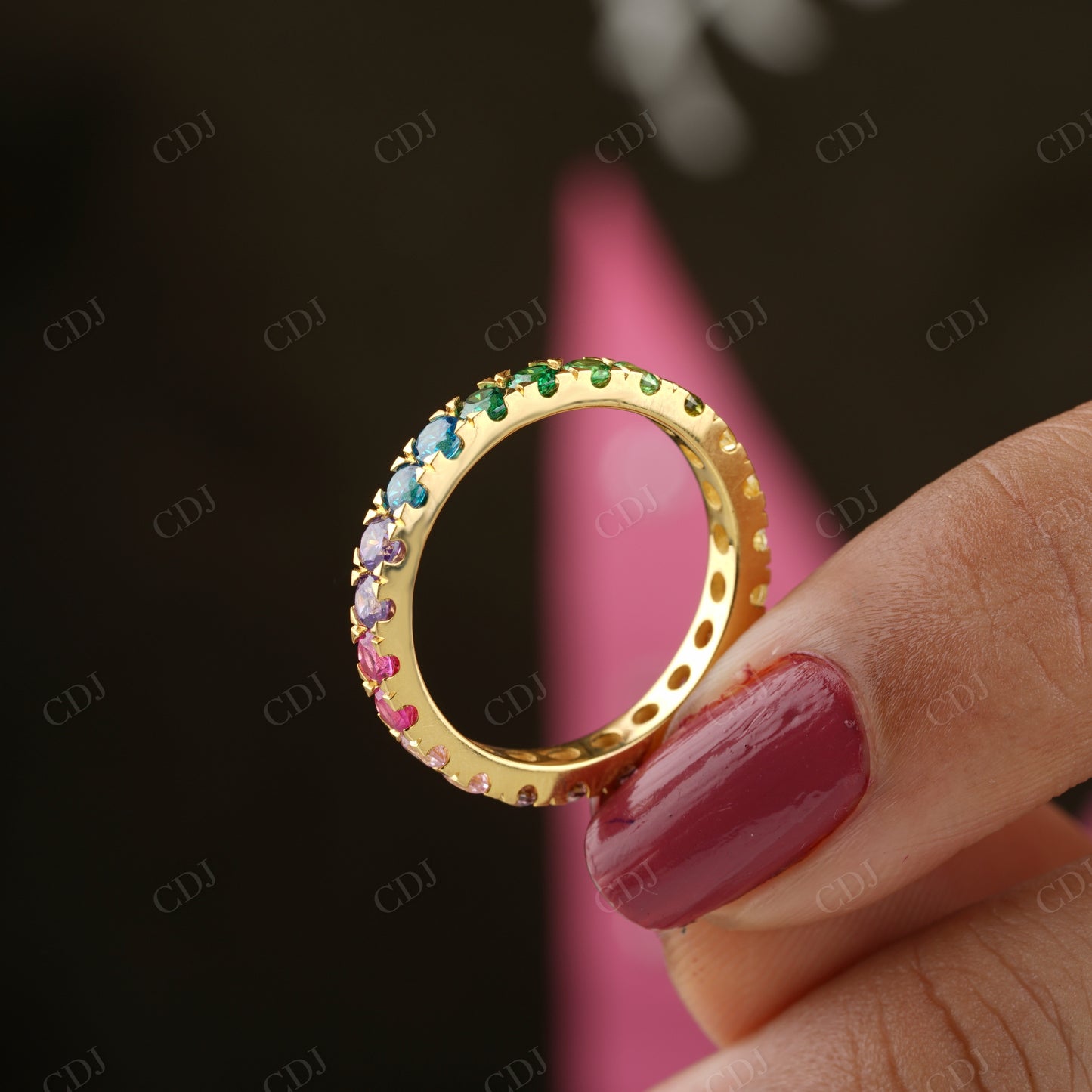 Rainbow Multi Color Moissanite Eternity Wedding Band
