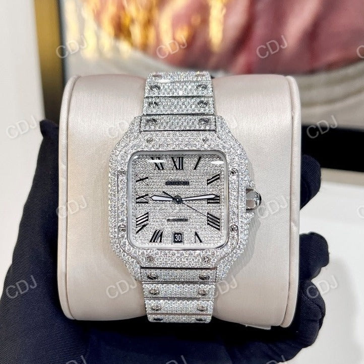 Cartier Fully Iced Out Stainless Steel Diamond Watch