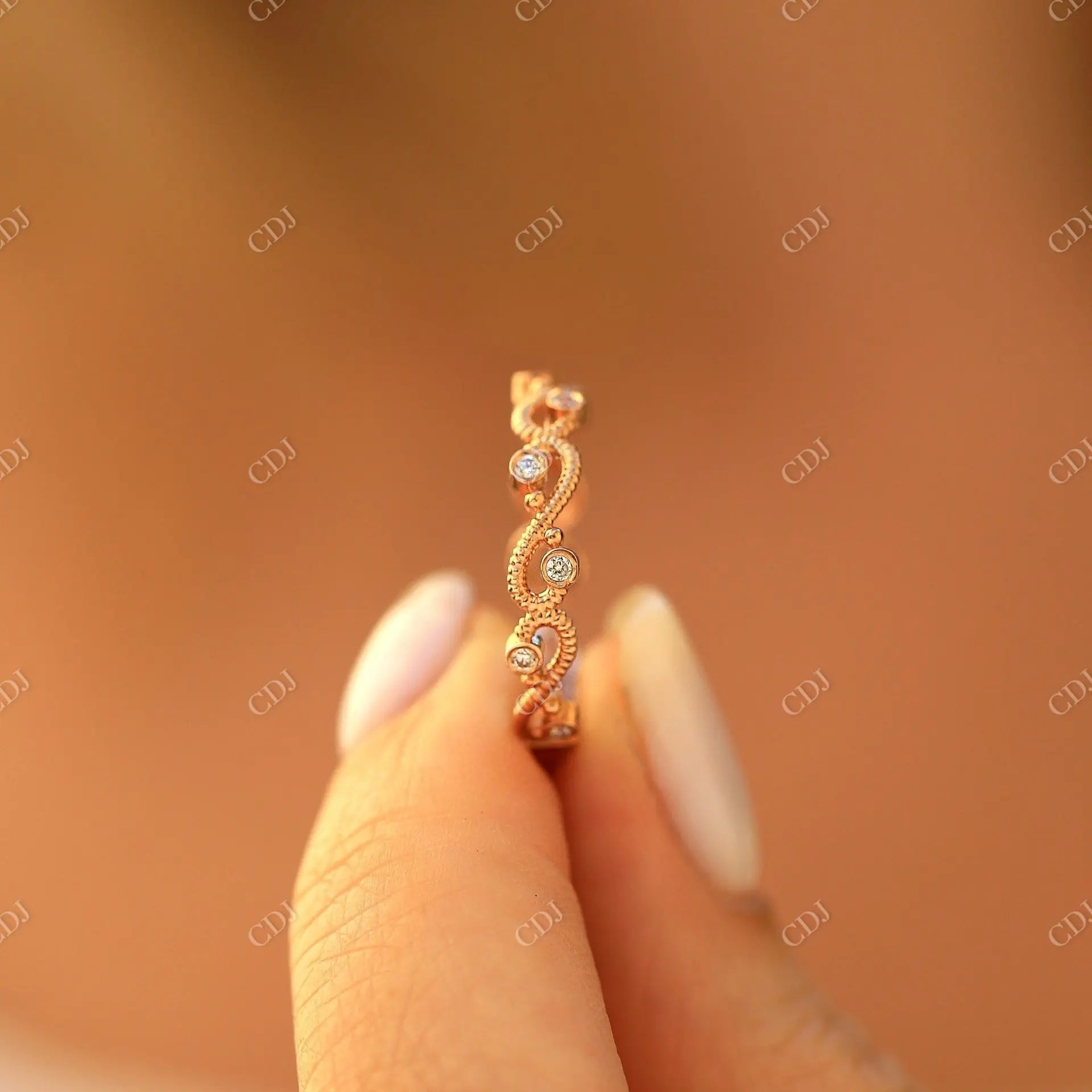 Celebrate your forever with the Rose Gold Bezel Set Twisted Moissanite Wedding Band—where elegance meets innovation.