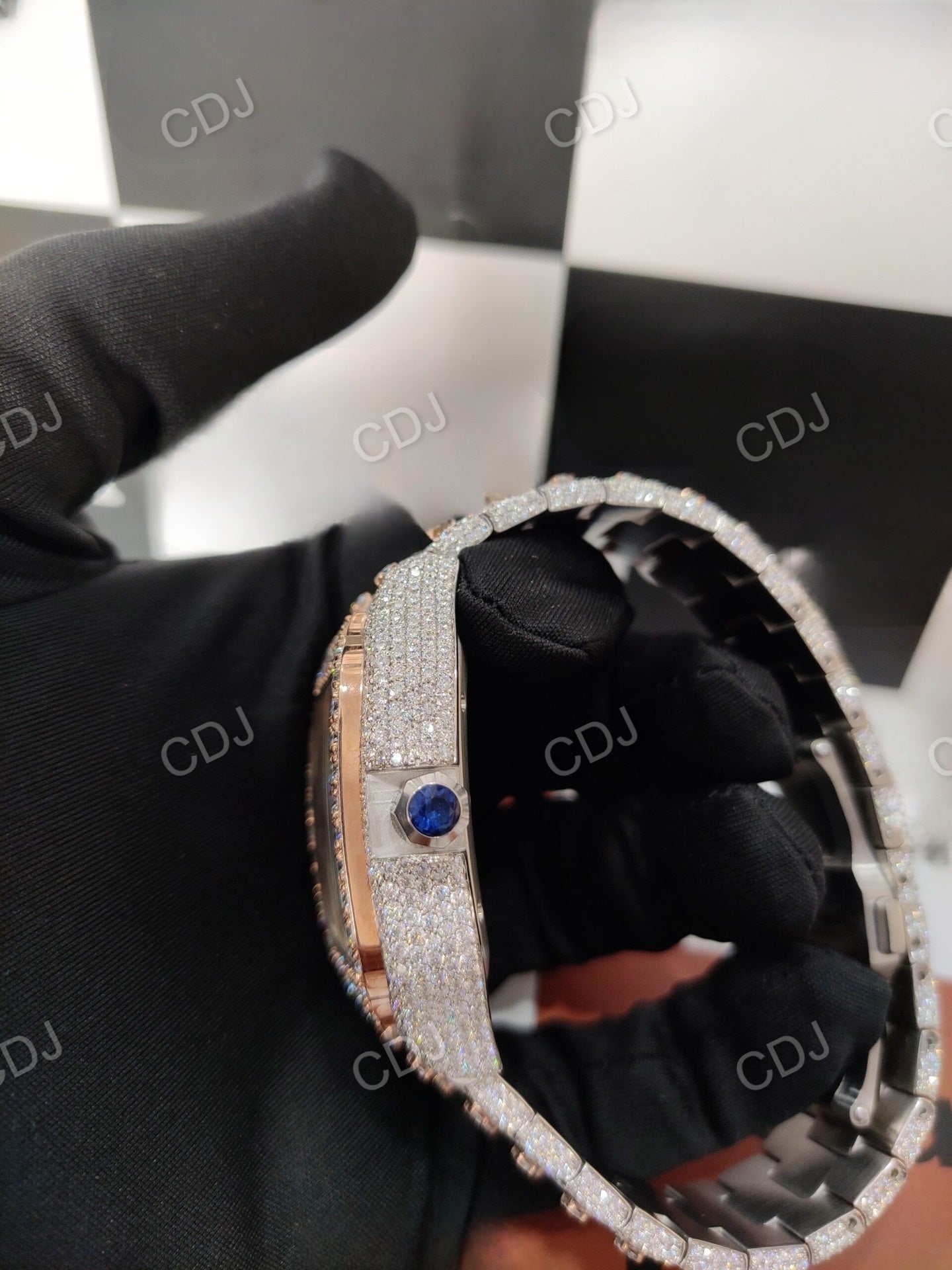 • Iced Out Moissanite Stones: The watch is beautifully adorned with Moissanite stones, known for their brilliance and durability, providing a dazzling effect that rivals traditional diamonds.