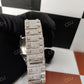 The Rose White Cartier Iced Out Moissanite Studded Watch is the ultimate expression of elegance and luxury. With its striking combination of rose gold and white elements, this watch is encrusted with high-quality Moissanite stones, offering exceptional sparkle and sophistication. Designed for those who appreciate both style and precision, this timepiece brings a touch of opulence to any occasion.