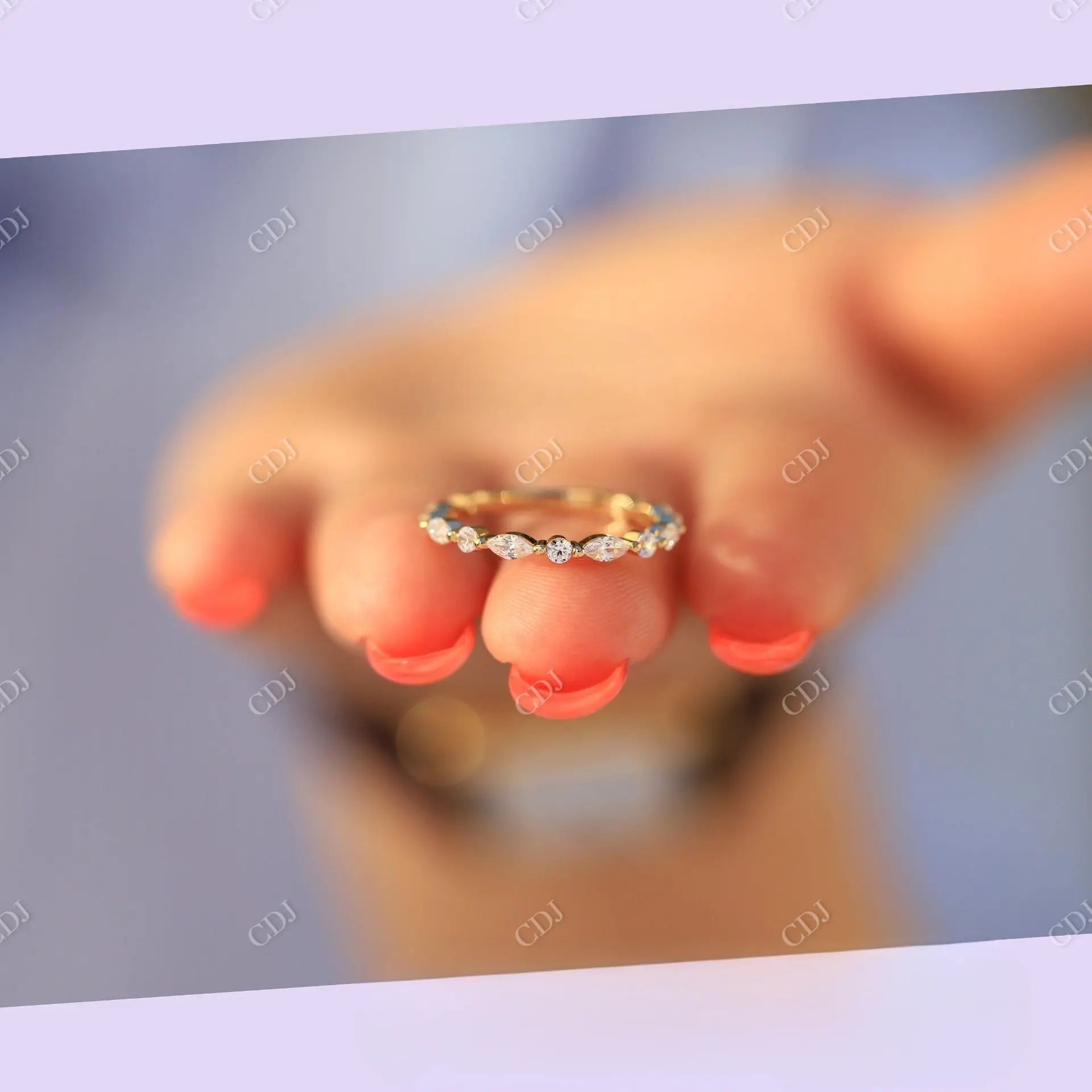 Whether you’re marking your wedding day or an anniversary, the Round and Marquise Moissanite Wedding Band captures the essence of your unique bond — radiant, timeless, and beautifully crafted.