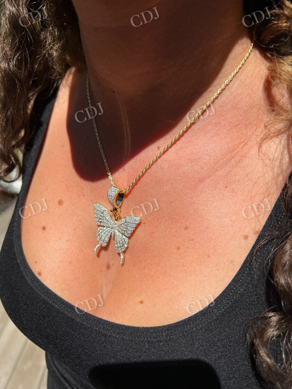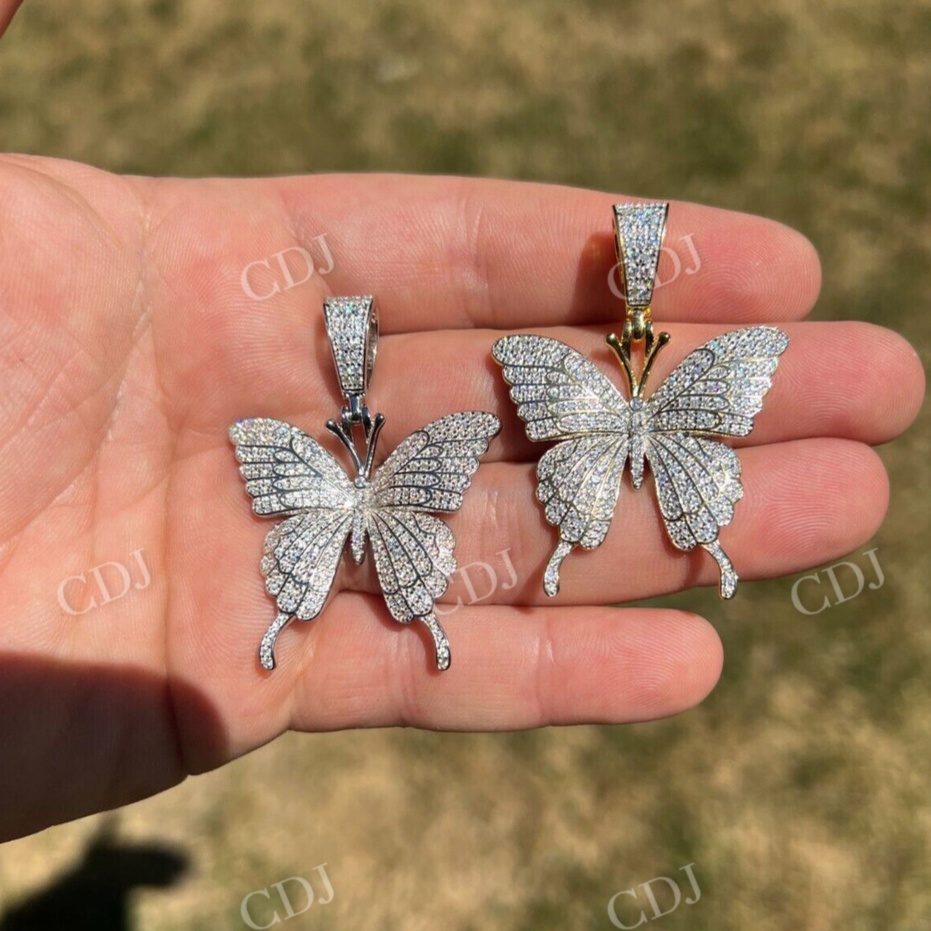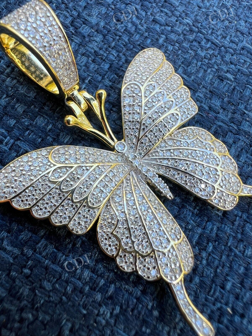 Round Cut Diamond Gold Butterfly Hip Hop Pendant