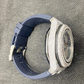 Semi Iced Out Diamond Chrono Blue Silicon Strap Watch
