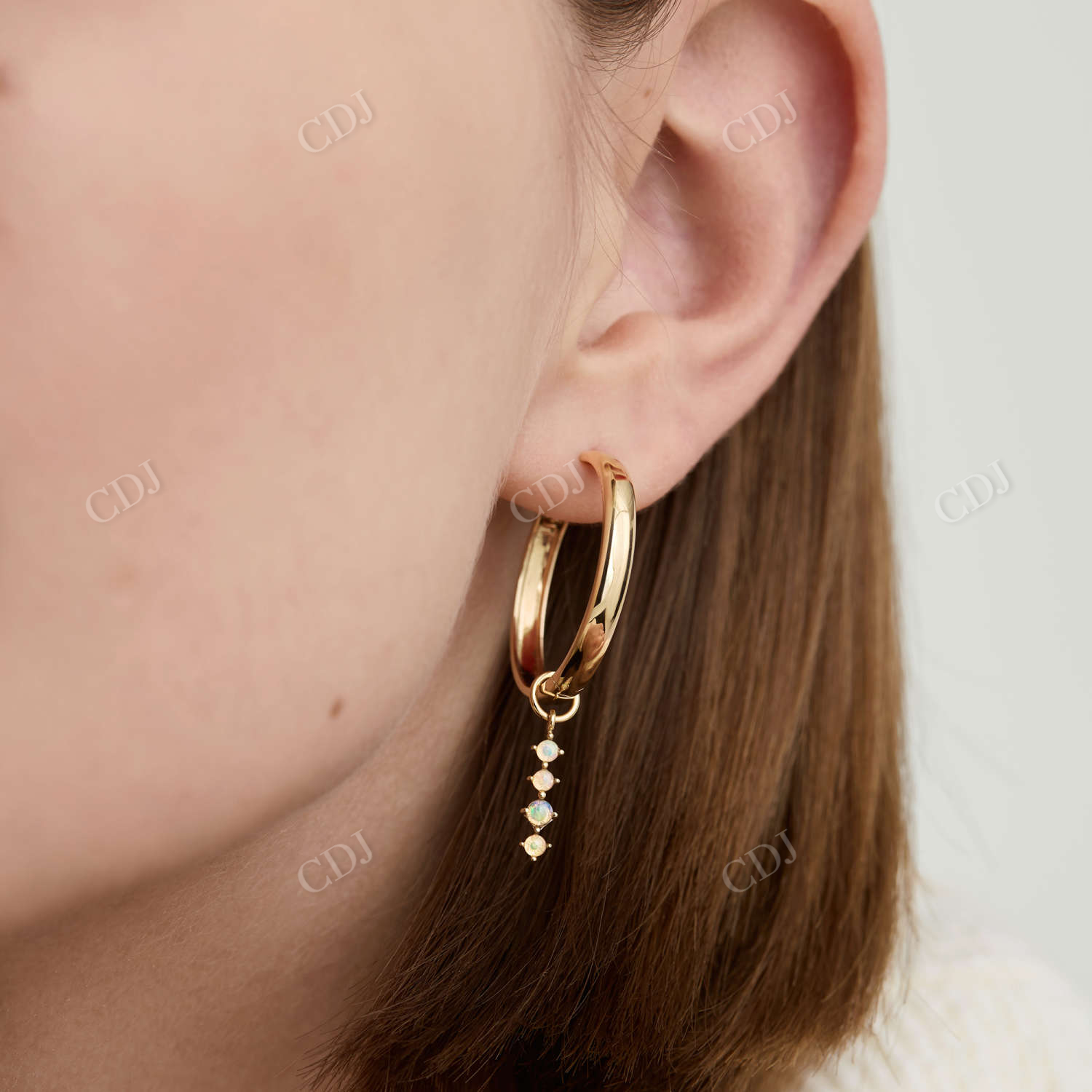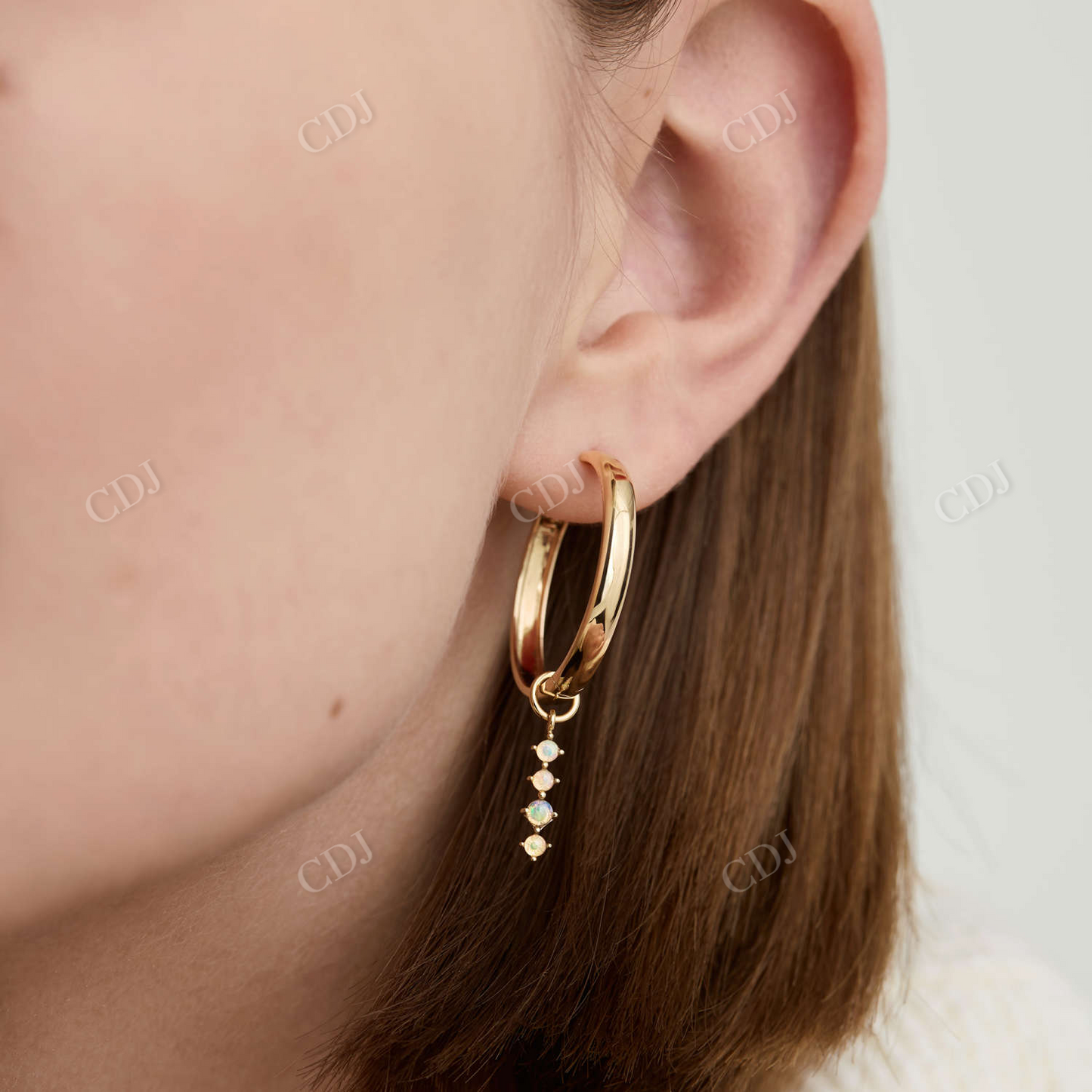 Single Opal Moissanite 14K Gold Hoop Charm Earrings