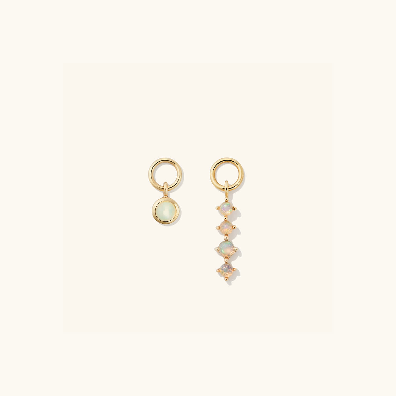 The Single Opal Moissanite 14K Gold Hoop Charm Earrings are perfect for the fashion-forward minimalist, spiritual soul, or jewelry lover seeking a little extra light.