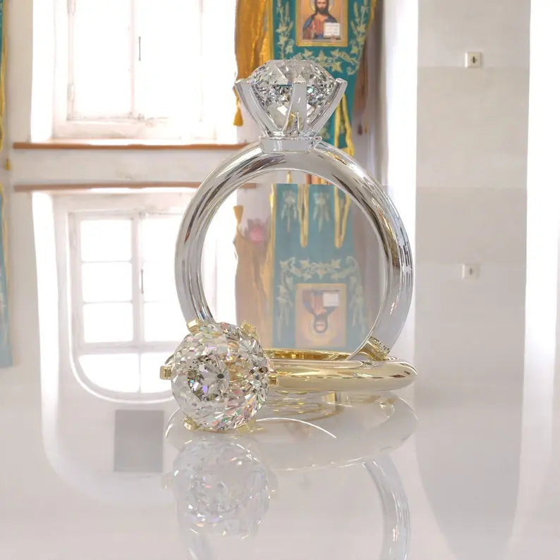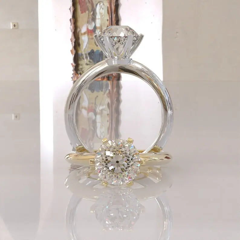 A solitaire engagement ring remains a timeless choice, symbolizing pure love and commitment. The Portuguese cut moissanite adds a unique twist by delivering a level of sparkle and fire that rivals traditional diamonds but with greater ethical and environmental benefits.