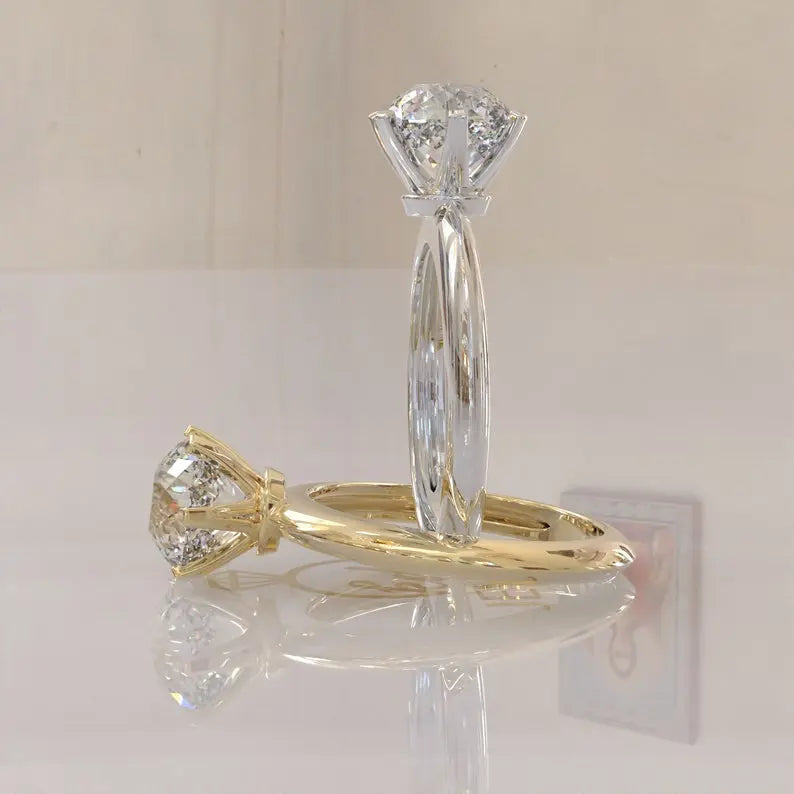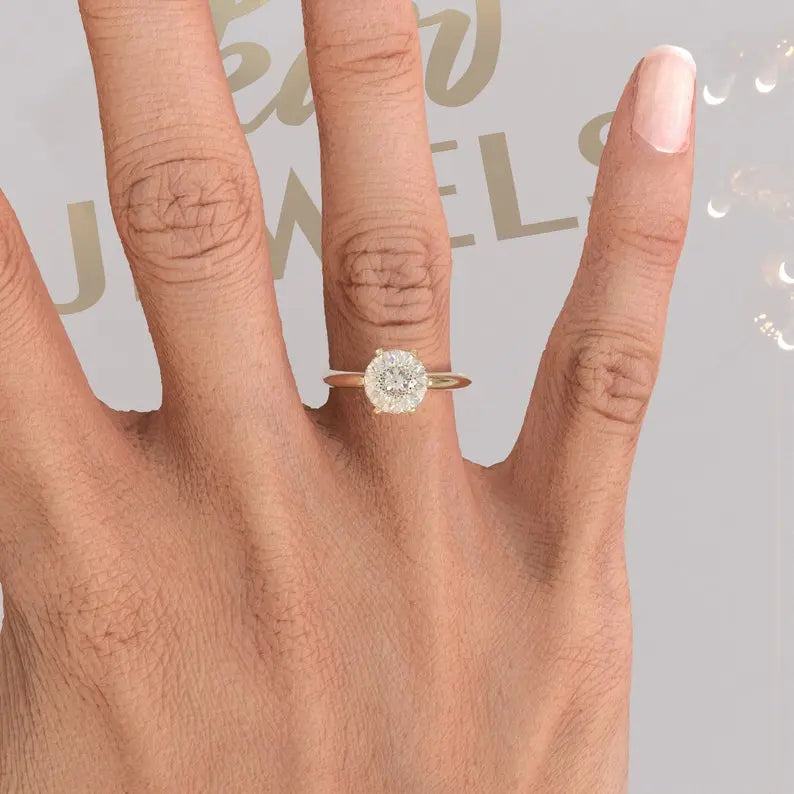 This solitaire ring highlights the center stone beautifully with a minimalist setting that emphasizes purity and sophistication.